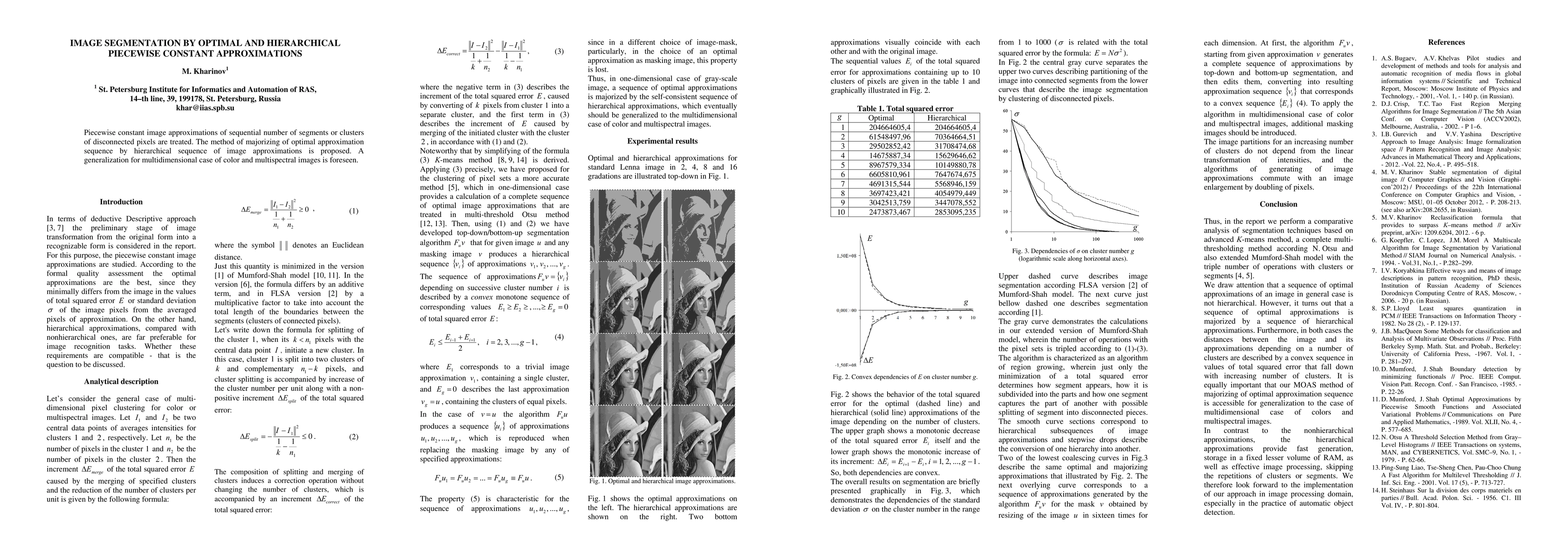Piecewise constant image approximations of sequential number of segments or clusters of disconnected pixels are treated. The method of majorizing of optimal approximation sequence by hierarchical sequence of image approximations is proposed. A generalization for multidimensional case of color and multispectral images is foreseen.