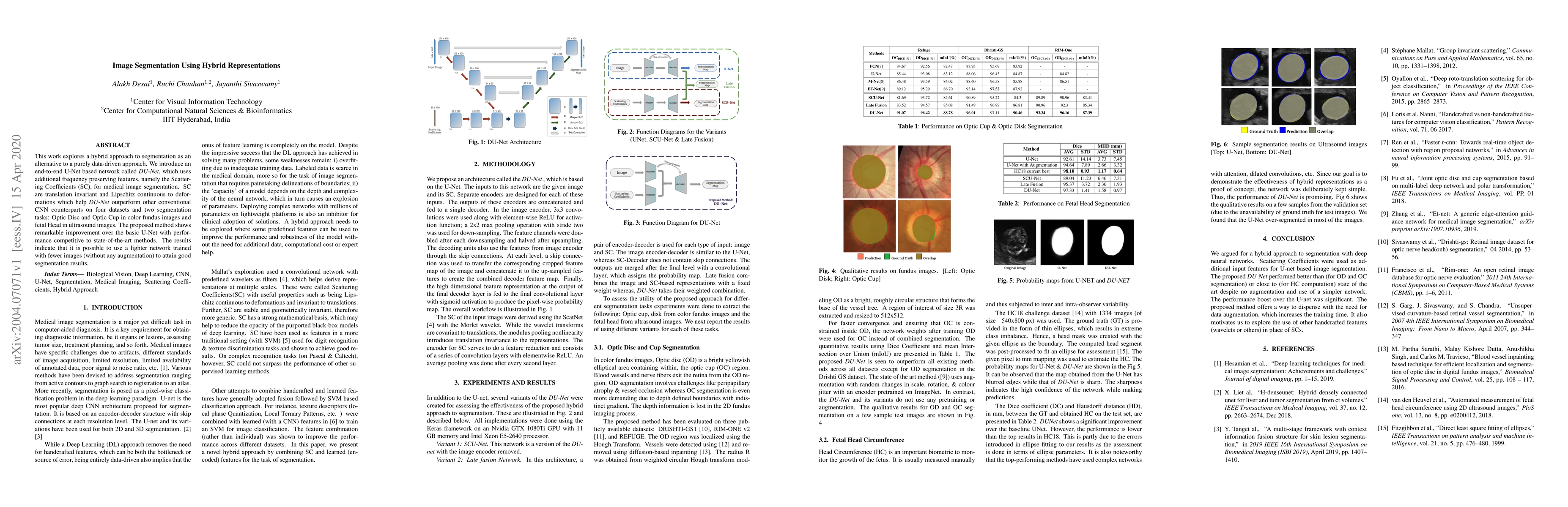 This work explores a hybrid approach to segmentation as an alternative to a purely data-driven approach. We introduce an end-to-end U-Net based network called DU-Net, which uses additional frequency preserving features, namely the Scattering Coefficients (SC), for medical image segmentation. SC are translation invariant and Lipschitz continuous to deformations which help DU-Net outperform other conventional CNN counterparts on four datasets and two segmentation tasks: Optic Disc and Optic Cup in color fundus images and fetal Head in ultrasound images. The proposed method shows remarkable improvement over the basic U-Net with performance competitive to state-of-the-art methods. The results indicate that it is possible to use a lighter network trained with fewer images (without any augmentation) to attain good segmentation results.