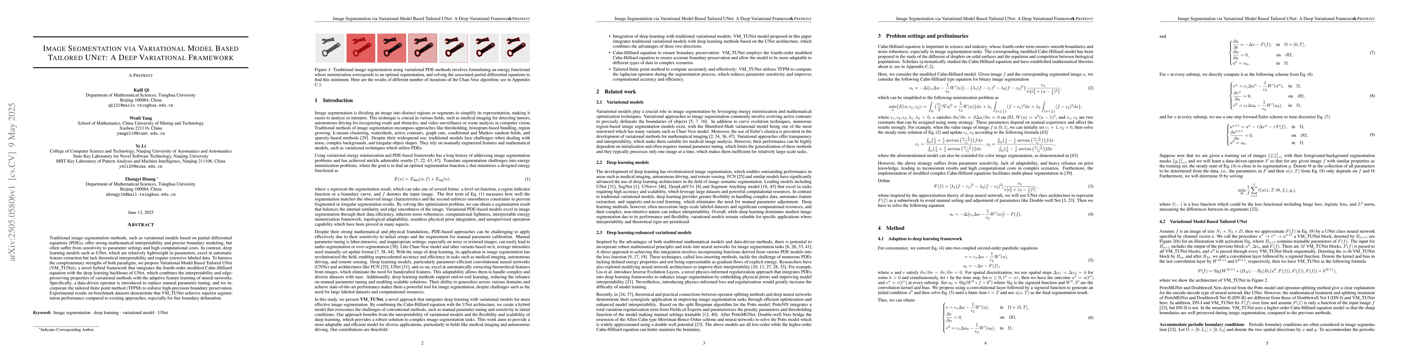 Traditional image segmentation methods, such as variational models based on partial differential equations (PDEs), offer strong mathematical interpretability and precise boundary modeling, but often suffer from sensitivity to parameter settings and high computational costs. In contrast, deep learning models such as UNet, which are relatively lightweight in parameters, excel in automatic feature extraction but lack theoretical interpretability and require extensive labeled data. To harness the complementary strengths of both paradigms, we propose Variational Model Based Tailored UNet (VM_TUNet), a novel hybrid framework that integrates the fourth-order modified Cahn-Hilliard equation with the deep learning backbone of UNet, which combines the interpretability and edge-preserving properties of variational methods with the adaptive feature learning of neural networks. Specifically, a data-driven operator is introduced to replace manual parameter tuning, and we incorporate the tailored finite point method (TFPM) to enforce high-precision boundary preservation. Experimental results on benchmark datasets demonstrate that VM_TUNet achieves superior segmentation performance compared to existing approaches, especially for fine boundary delineation.