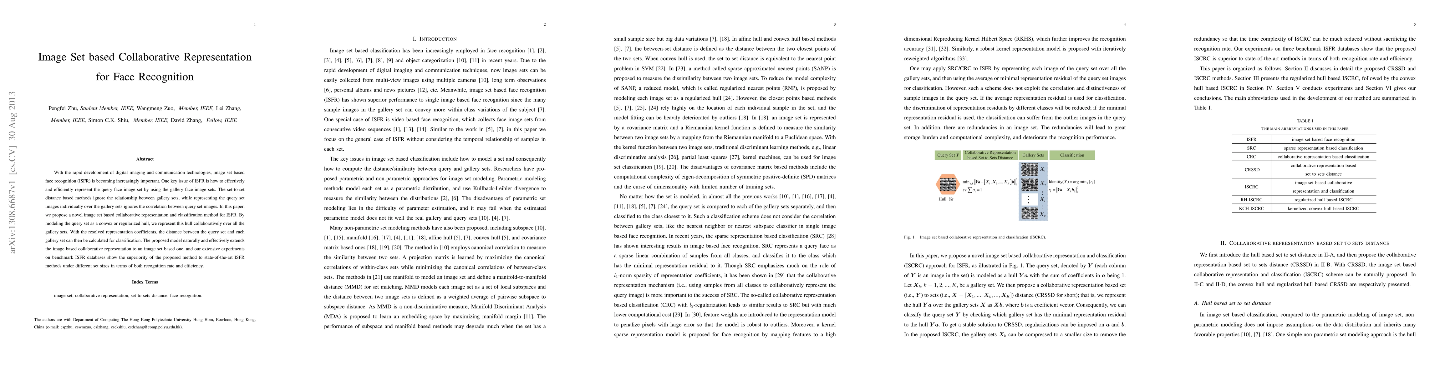 This paper proposes an image set based collaborative representation method for face recognition, modeling query sets as convex hulls and representing them collaboratively over gallery sets to enhance recognition accuracy and efficiency compared to existing methods. Experimental results show superior performance over state-of-the-art ISFR techniques.