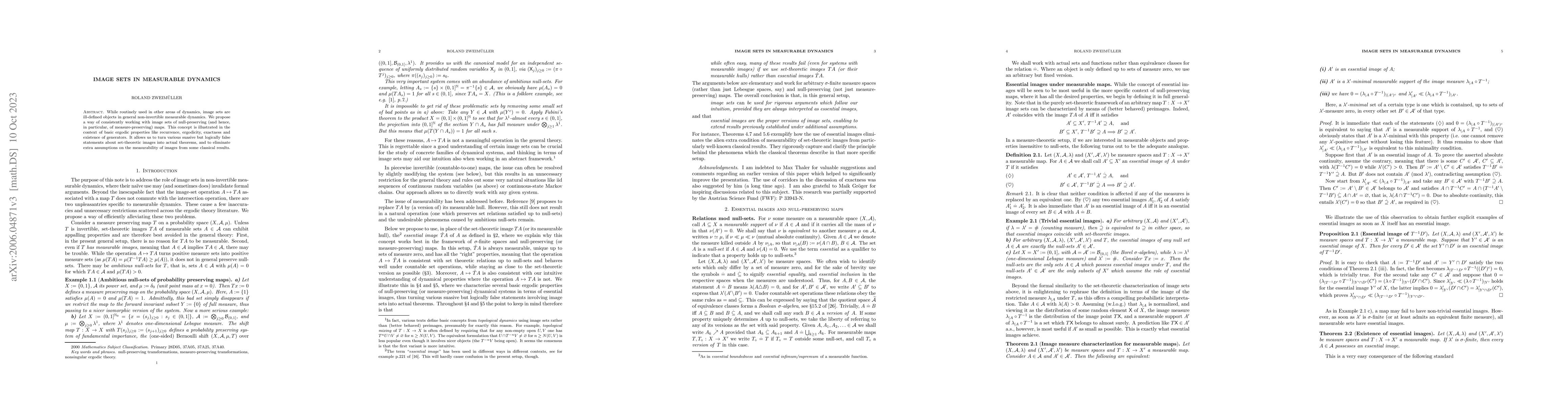 While routinely used in other areas of dynamics, image sets are ill-defined objects in general non-invertible measurable dynamics. We propose a way of consistently working with image sets of null-preserving (and hence, in particular, of measure-preserving) maps. This concept is illustrated in the context of basic ergodic properties like recurrence, ergodicity, exactness and existence of generators. It allows us to turn various suasive but logically false statements about set-theoretic images into actual theorems, and to eliminate extra assumptions on the measurability of images from some classical results.