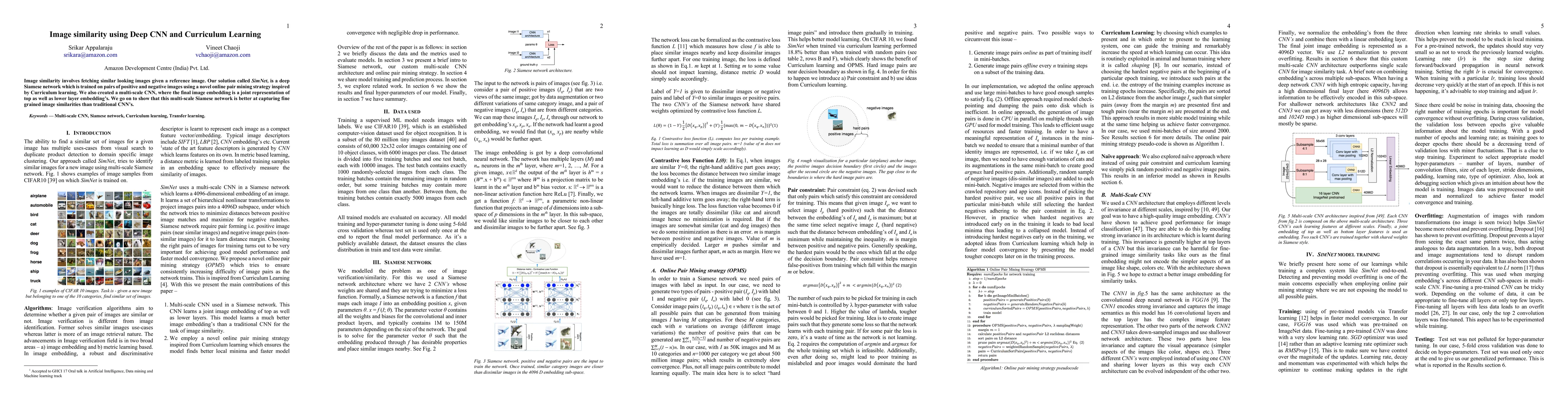 Here's a concise two-line summary of the research paper: This paper proposes SimNet, a deep siamese network trained with a curriculum learning approach and a multi-scale CNN to enhance the detection of fine-grained image similarities, outperforming traditional CNNs. The method uses a novel online pair mining strategy to improve training efficiency.