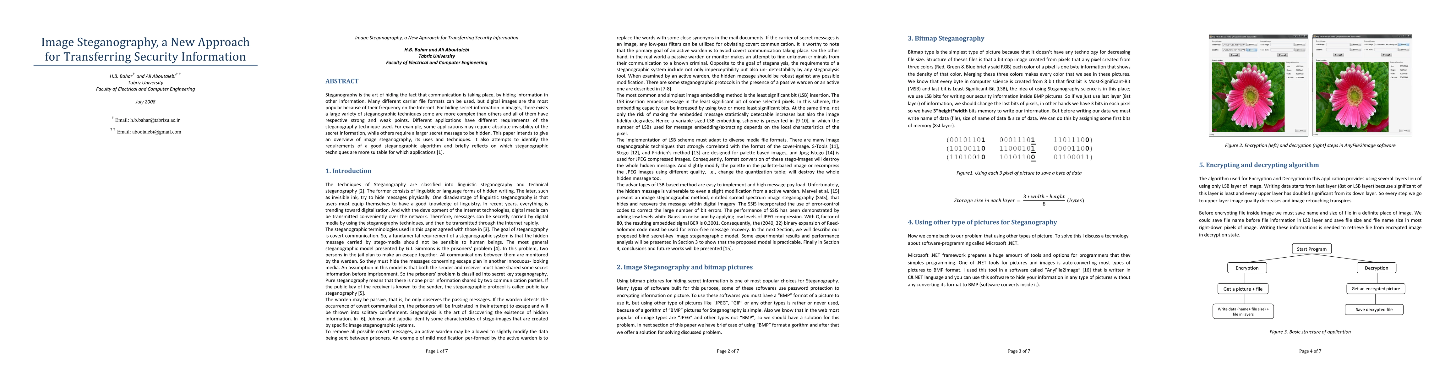 The paper provides an overview of image steganography, discussing its uses, techniques, and requirements of a good steganographic algorithm.