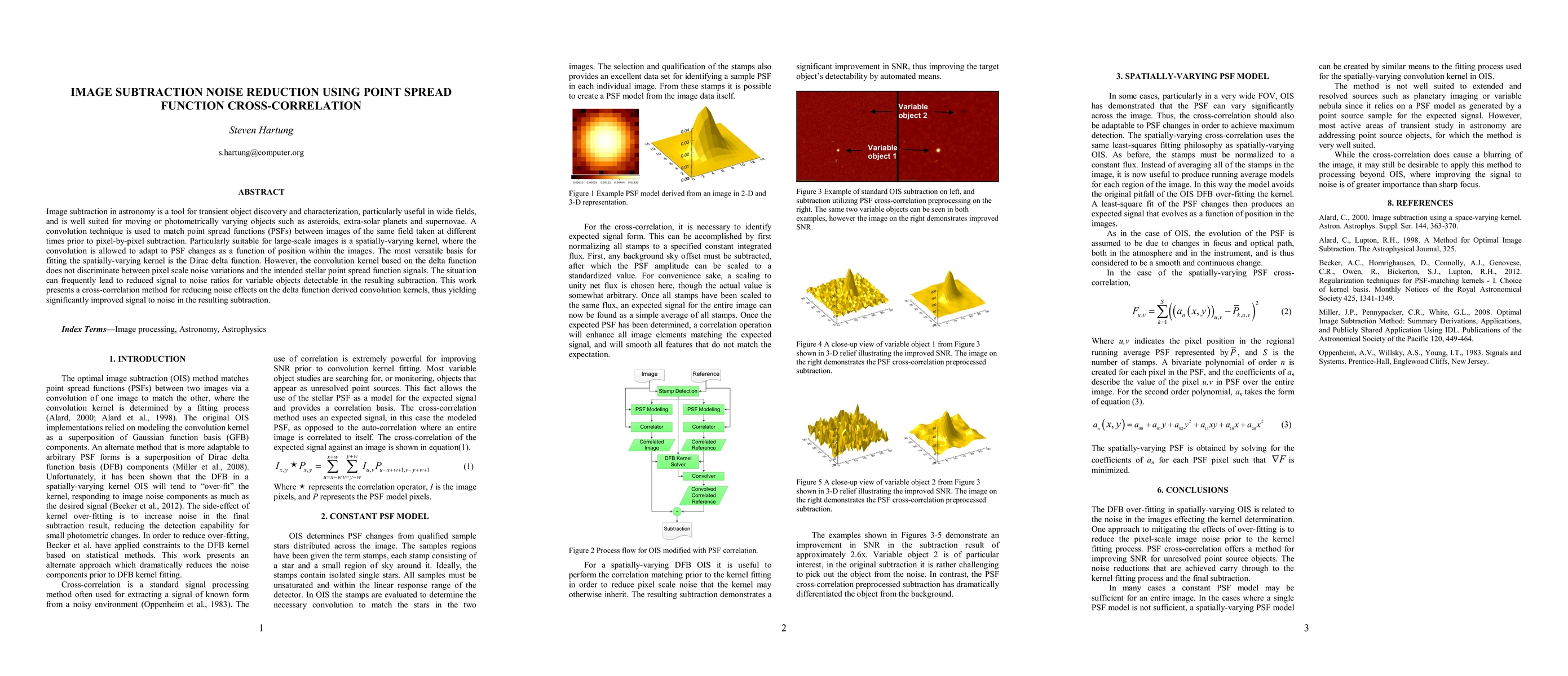 This paper proposes a cross-correlation method to enhance image subtraction in astronomy, specifically for detecting transient objects. It addresses noise reduction in convolution kernels based on point spread functions, improving signal-to-noise ratios for variable objects in large-scale images.