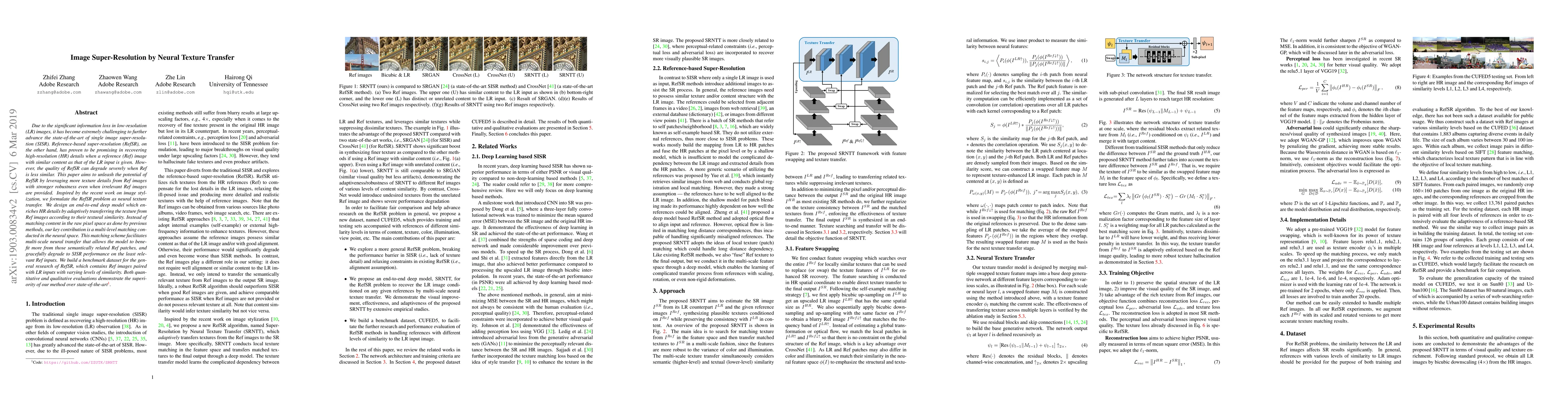 This paper proposes a novel neural texture transfer method for reference-based super-resolution (RefSR) that enhances the recovery of high-resolution details by adaptively transferring texture from reference images, even when they are not highly similar. The method employs multi-level matching in neural space to achieve robust performance.