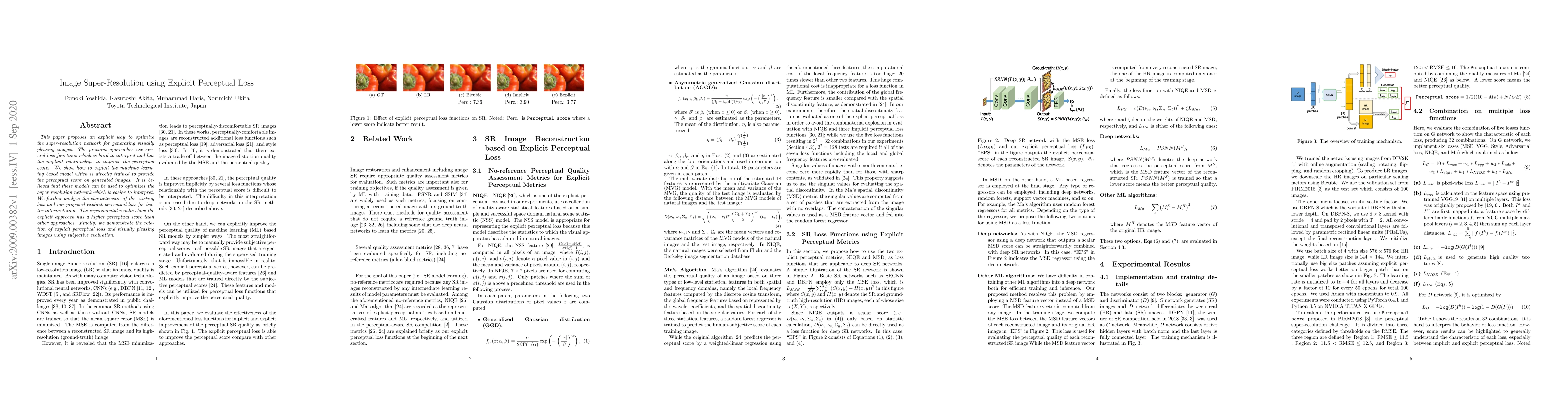 This paper proposes an explicit way to optimize the super-resolution network for generating visually pleasing images. The previous approaches use several loss functions which is hard to interpret and has the implicit relationships to improve the perceptual score. We show how to exploit the machine learning based model which is directly trained to provide the perceptual score on generated images. It is believed that these models can be used to optimizes the super-resolution network which is easier to interpret. We further analyze the characteristic of the existing loss and our proposed explicit perceptual loss for better interpretation. The experimental results show the explicit approach has a higher perceptual score than other approaches. Finally, we demonstrate the relation of explicit perceptual loss and visually pleasing images using subjective evaluation.