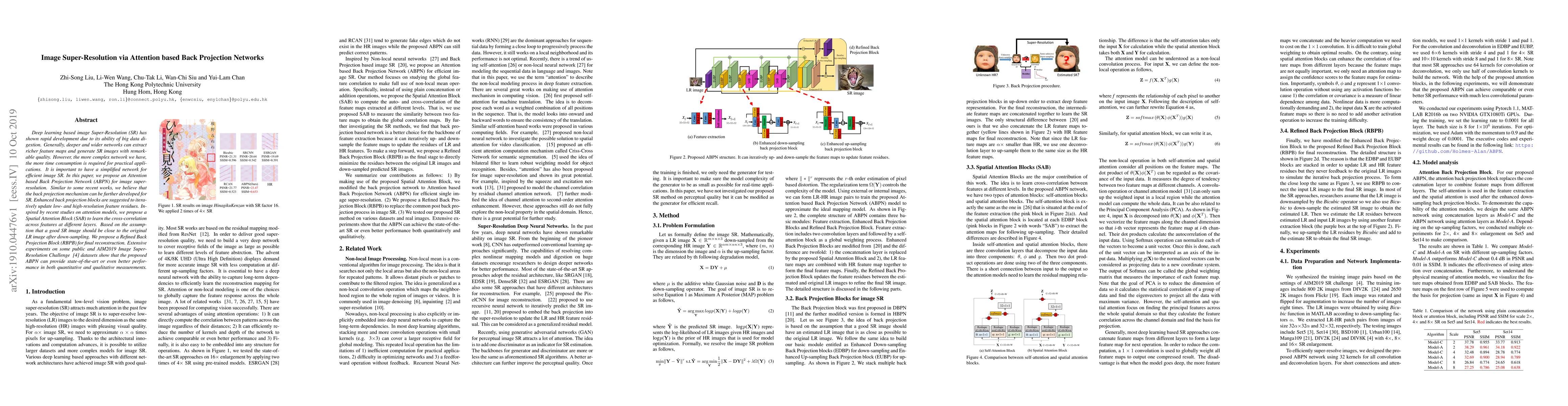 This paper proposes an Attention based Back Projection Network (ABPN) for efficient image super-resolution, utilizing enhanced back projection blocks and a Spatial Attention Block to iteratively refine feature maps. The method achieves state-of-the-art performance in both quantitative and qualitative metrics.