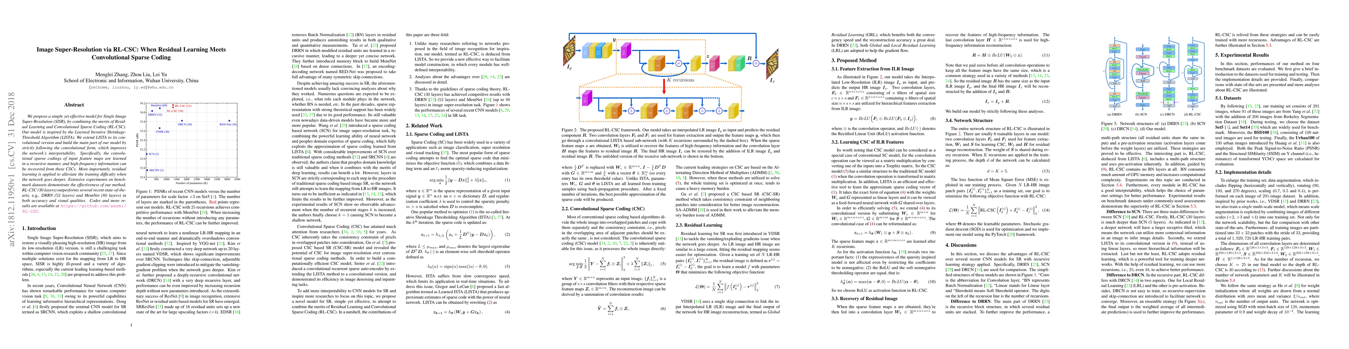 We propose a simple yet effective model for Single Image Super-Resolution (SISR), by combining the merits of Residual Learning and Convolutional Sparse Coding (RL-CSC). Our model is inspired by the Learned Iterative Shrinkage-Threshold Algorithm (LISTA). We extend LISTA to its convolutional version and build the main part of our model by strictly following the convolutional form, which improves the network's interpretability. Specifically, the convolutional sparse codings of input feature maps are learned in a recursive manner, and high-frequency information can be recovered from these CSCs. More importantly, residual learning is applied to alleviate the training difficulty when the network goes deeper. Extensive experiments on benchmark datasets demonstrate the effectiveness of our method. RL-CSC (30 layers) outperforms several recent state-of-the-arts, e.g., DRRN (52 layers) and MemNet (80 layers) in both accuracy and visual qualities. Codes and more results are available at https://github.com/axzml/RL-CSC.