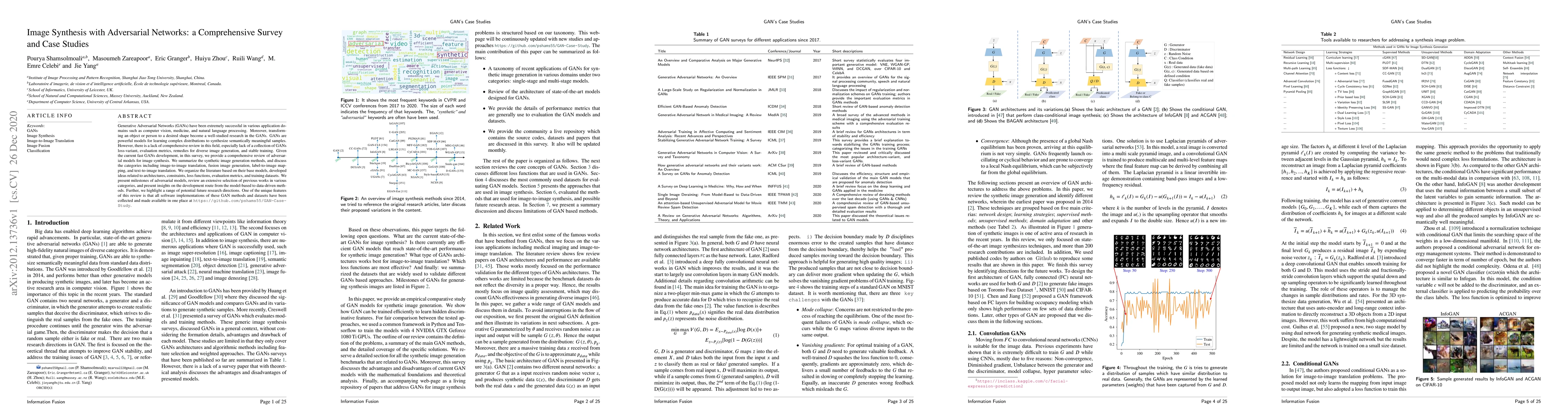 This paper provides a comprehensive survey of Generative Adversarial Networks (GANs) for image synthesis, categorizing methods into image-to-image translation, fusion, label-to-image mapping, and text-to-image translation. It reviews various GAN architectures, loss functions, evaluation metrics, and training strategies, and highlights future research directions, with all software implementations and datasets available on GitHub.