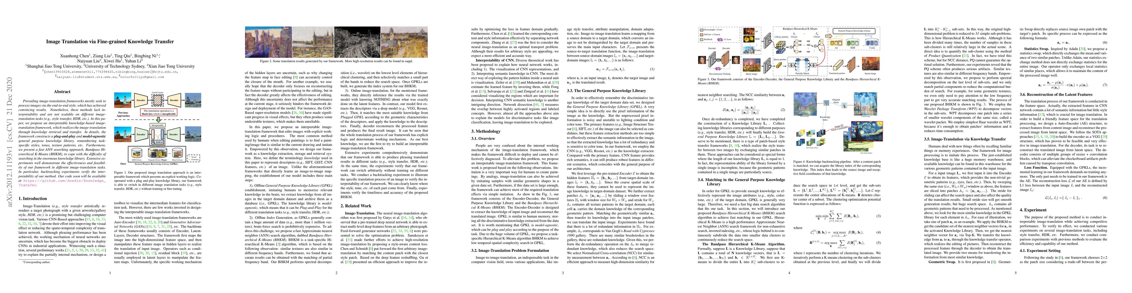 This paper proposes an interpretable image-translation framework that uses a knowledge library to transfer styles and achieve convincing results without lacking interpretability or scalability, demonstrating its effectiveness in various tasks.