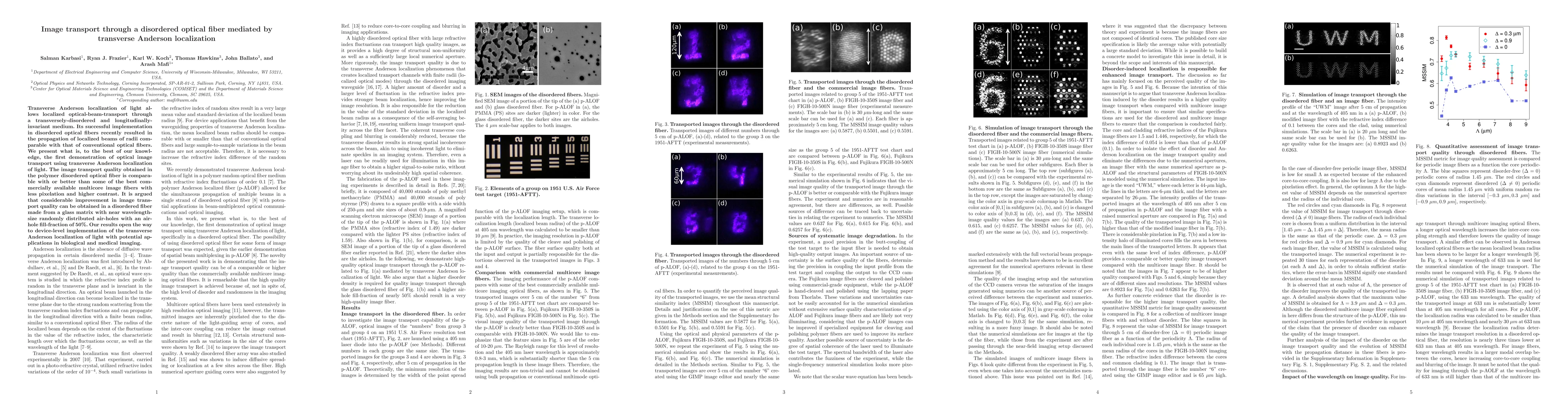 This research demonstrates optical image transport through a disordered optical fiber utilizing transverse Anderson localization, achieving quality comparable to or exceeding commercial multicore fibers. The study suggests significant improvements in image quality with optimized glass-based fibers, highlighting potential applications in biological and medical imaging.