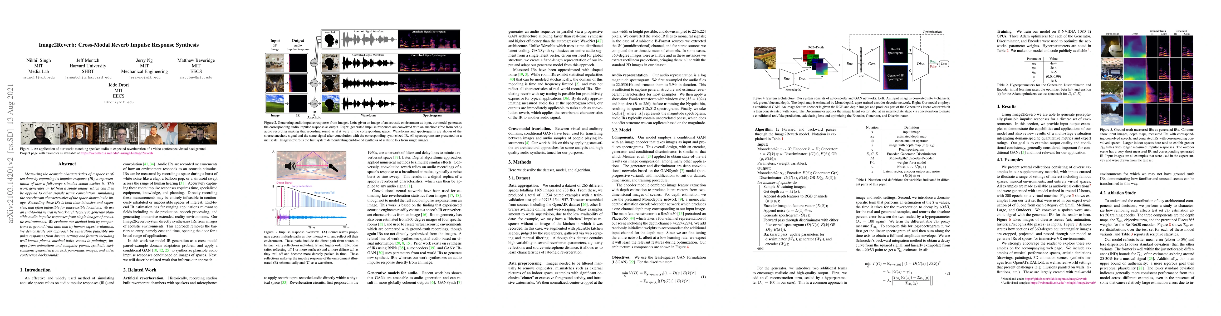 Measuring the acoustic characteristics of a space is often done by capturing its impulse response (IR), a representation of how a full-range stimulus sound excites it. This work generates an IR from a single image, which can then be applied to other signals using convolution, simulating the reverberant characteristics of the space shown in the image. Recording these IRs is both time-intensive and expensive, and often infeasible for inaccessible locations. We use an end-to-end neural network architecture to generate plausible audio impulse responses from single images of acoustic environments. We evaluate our method both by comparisons to ground truth data and by human expert evaluation. We demonstrate our approach by generating plausible impulse responses from diverse settings and formats including well known places, musical halls, rooms in paintings, images from animations and computer games, synthetic environments generated from text, panoramic images, and video conference backgrounds.
