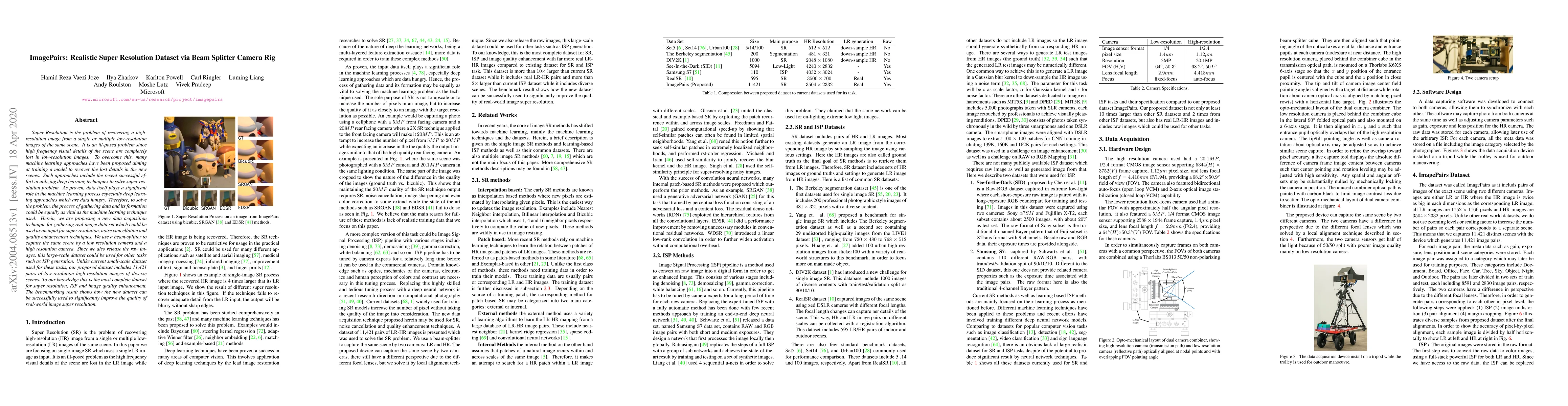 A new dataset of 11,421 pairs of low-resolution and high-resolution images, created using a beam-splitter camera rig, is proposed for super resolution, noise cancellation, and quality enhancement tasks, significantly improving real-world image quality.