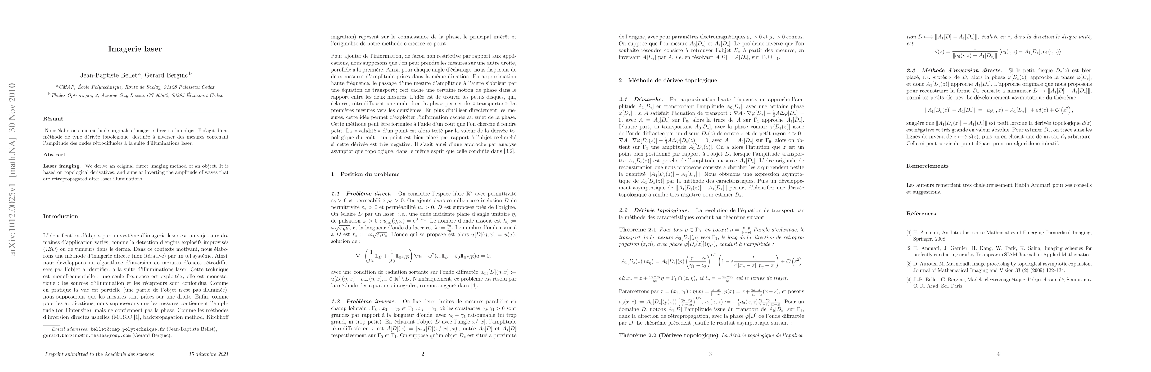 We derive an original direct imaging method of an object. It is based on topological derivatives, and aims at inverting the amplitude of waves that are retropropagated after laser illuminations.