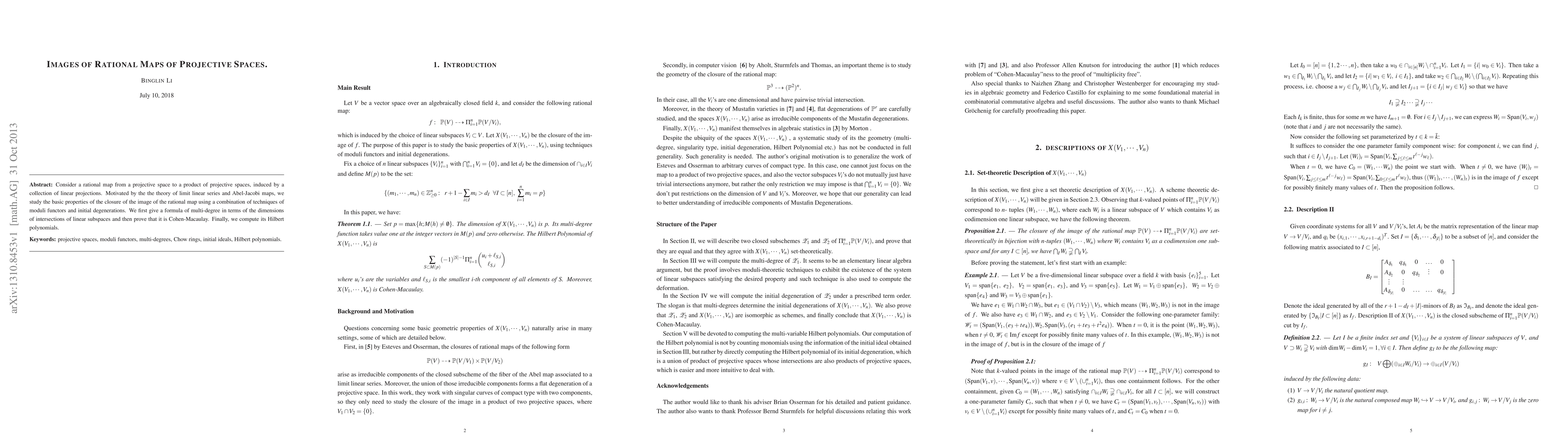 Consider a rational map from a projective space to a product of projective spaces, induced by a collection of linear projections. Motivated by the the theory of limit linear series and Abel-Jacobi maps, we study the basic properties of the closure of the image of the rational map using a combination of techniques of moduli functors and initial degenerations. We first give a formula of multi-degree in terms of the dimensions of intersections of linear subspaces and then prove that it is Cohen-Macaulay. Finally, we compute its Hilbert polynomials.