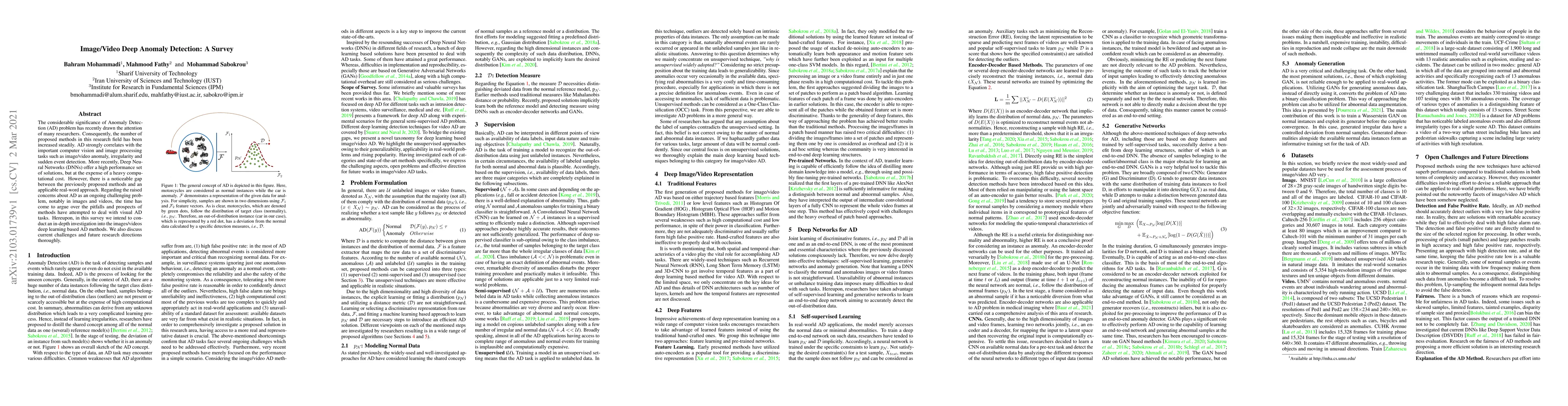 This paper surveys deep learning-based methods for image/video anomaly detection, highlighting the advancements and challenges in leveraging Deep Neural Networks for high-performance solutions while addressing the computational costs and real-world applicability. It also discusses current limitations and future research directions in this field.