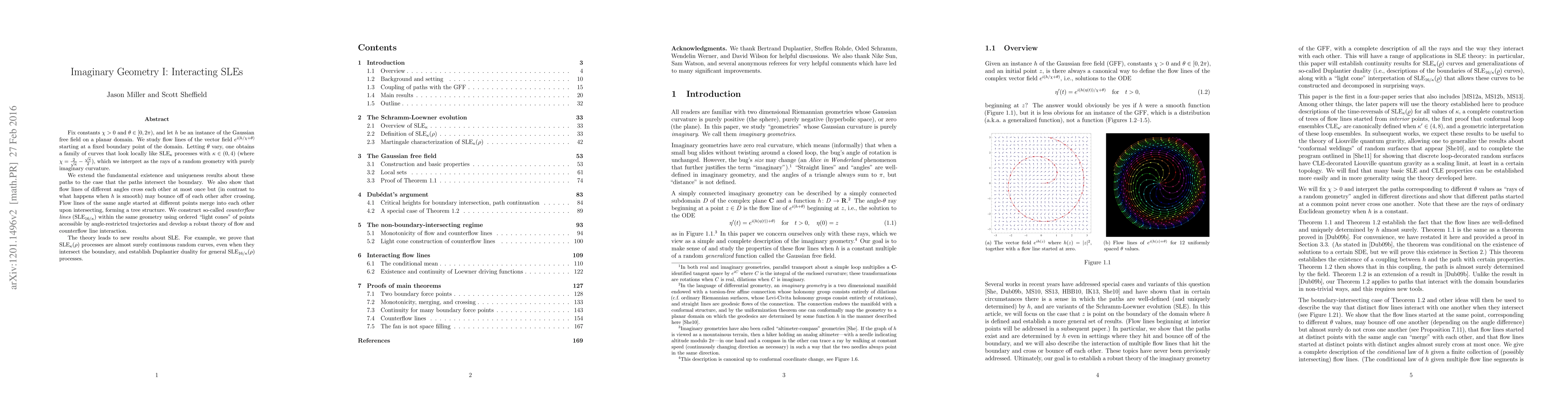This paper studies the flow lines of a vector field derived from the Gaussian free field, interpreting them as rays of a random geometry with purely imaginary curvature. It extends the existence and uniqueness of these paths to intersecting cases, showing the interaction properties and constructing a theory of flow and counterflow lines, leading to new results on SLE processes, including their continuity and Duplantier duality.