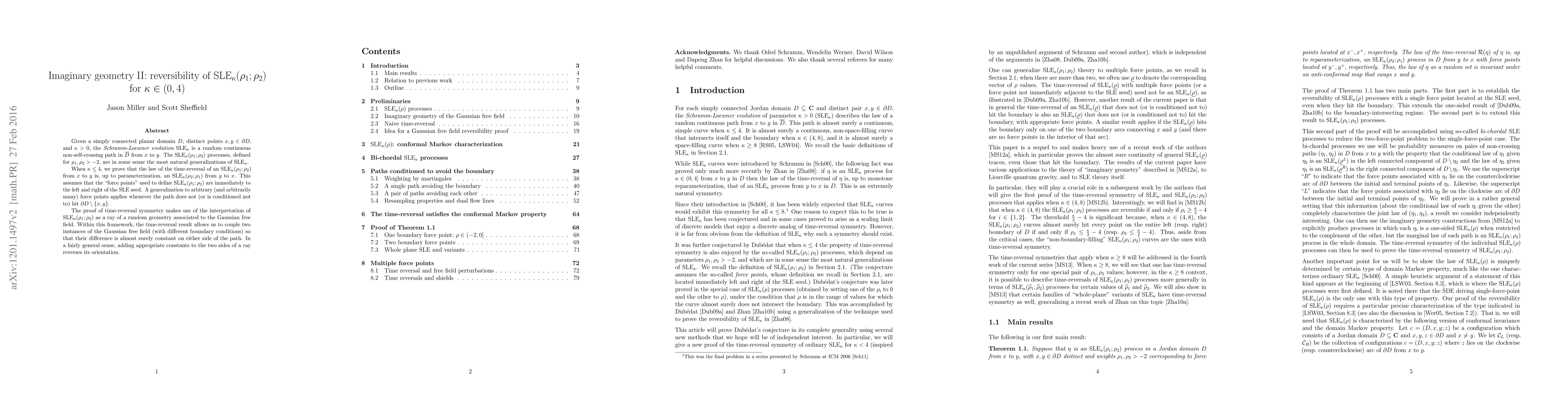 Given a simply connected planar domain D, distinct points x,y \in \partial D, and \kappa >0, the Schramm-Loewner evolution SLE_\kappa is a random continuous non-self-crossing path in the closure of D from x to y. The SLE_\kappa(\rho_1;\rho_2) processes, defined for \rho_1, \rho_2 > -2, are in some sense the most natural generalizations of SLE_\kappa. When \kappa \leq 4, we prove that the law of the time-reversal of an \SLE_\kappa(\rho_1;\rho_2) from x to y is, up to parameterization, an SLE_\kappa(\rho_2;\rho_1) from y to x. This assumes that the "force points" used to define SLE_\kappa(\rho_1;\rho_2) are immediately to the left and right of the SLE seed. A generalization to arbitrary (and arbitrarily many) force points applies whenever the path does not (or is conditioned not to) hit the boundary of D except at the endpoints. The time-reversal symmetry has a particularly natural interpretation when the paths are coupled with the Gaussian free field and viewed as rays of a random geometry. It allows us to couple two instances of the Gaussian free field (with different boundary conditions) so that their difference is almost surely constant on either side of the path. In a fairly general sense, adding appropriate constants to the two sides of a ray reverses its orientation.