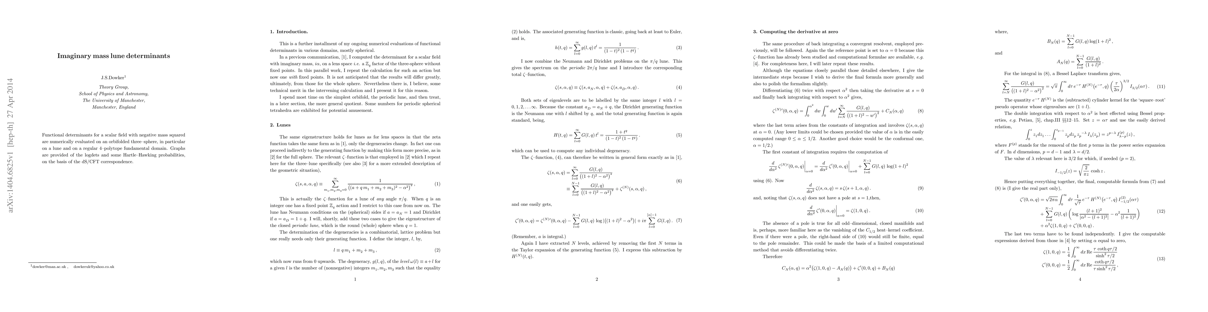 Functional determinants for a scalar field with negative mass squared are numerically evaluated on an orbifolded three-sphere, in particular on a lune and on a regular 4--polytope fundamental domain. Graphs are provided of the logdets and some Hartle-Hawking probabilities, on the basis of the dS/CFT correspondence.
