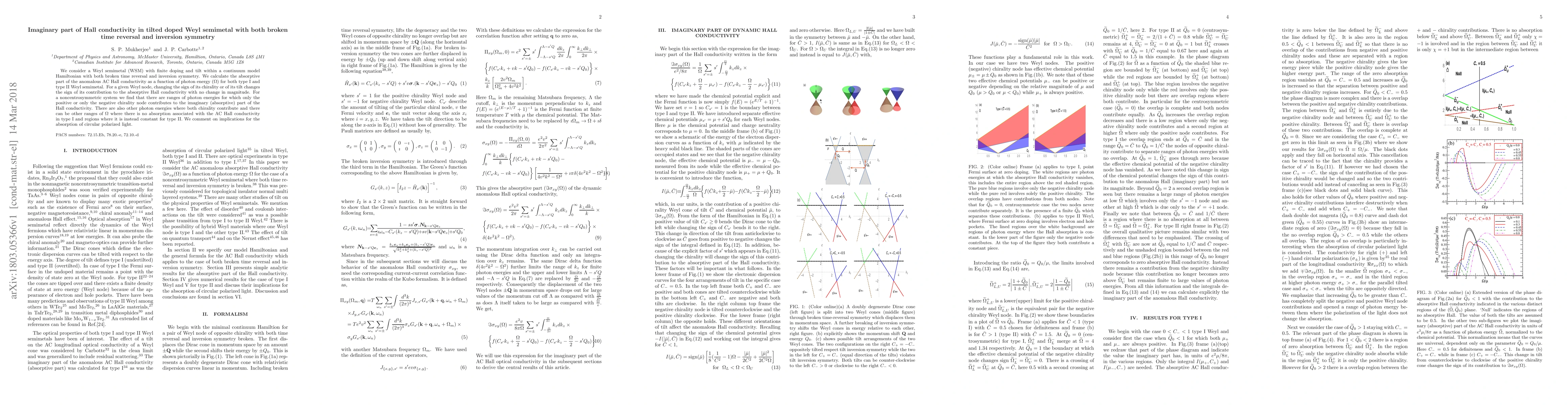 This paper investigates the absorptive part of anomalous AC Hall conductivity in doped Weyl semimetals with broken time reversal and inversion symmetry. It finds that the chirality and tilt of Weyl nodes determine the sign of their contribution to the imaginary part of Hall conductivity, with distinct photon energy ranges affecting absorption in type I and II Weyl semimetals.