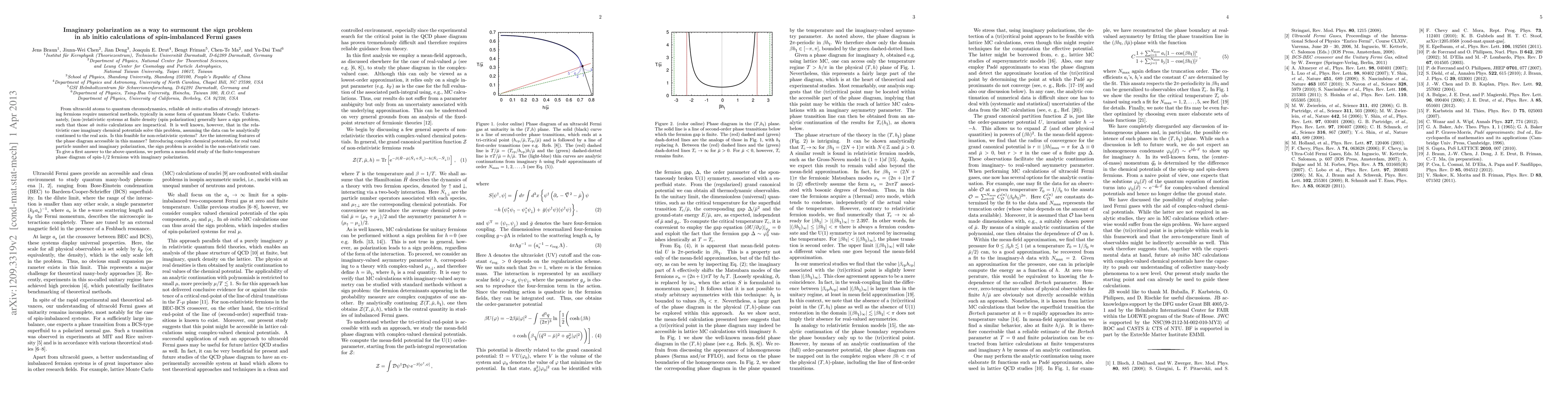 From ultracold atoms to quantum chromodynamics, reliable ab initio studies of strongly interacting fermions require numerical methods, typically in some form of quantum Monte Carlo calculation. Unfortunately, (non)relativistic systems at finite density (spin polarization) generally have a sign problem, such that those ab initio calculations are impractical. It is well-known, however, that in the relativistic case imaginary chemical potentials solve this problem, assuming the data can be analytically continued to the real axis. Is this feasible for nonrelativistic systems? Are the interesting features of the phase diagram accessible in this manner? By introducing complex chemical potentials, for real total particle number and imaginary polarization, the sign problem is avoided in the nonrelativistic case. To give a first answer to the above questions, we perform a mean-field study of the finite-temperature phase diagram of spin-1/2 fermions with imaginary polarization.