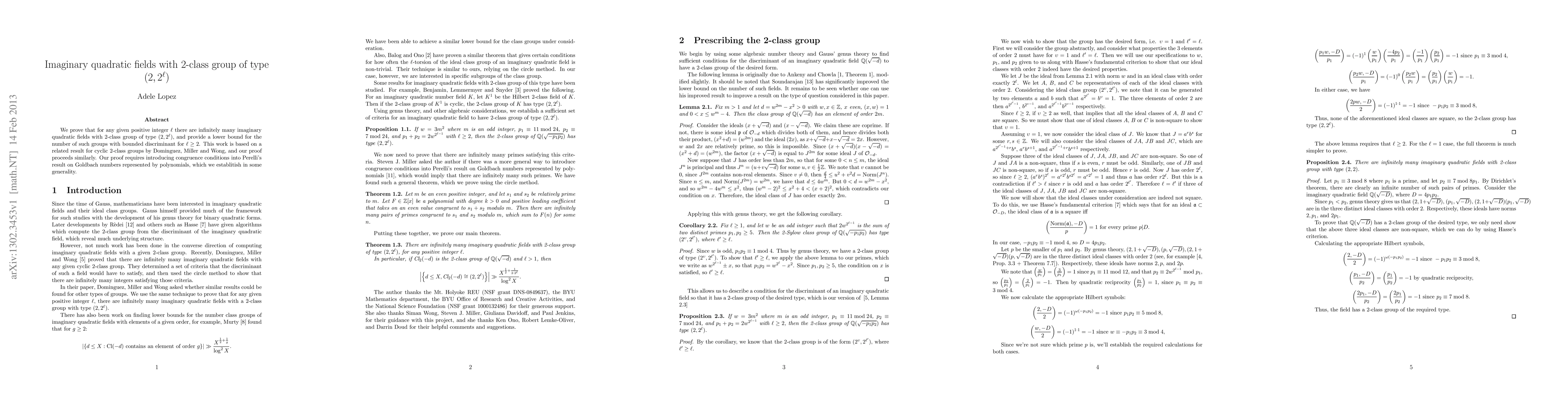 The paper proves that for any given positive integer $ ho$, there are infinitely many imaginary quadratic fields with a specific type of 2-class group, and provides a lower bound for the number of such groups with bounded discriminant.