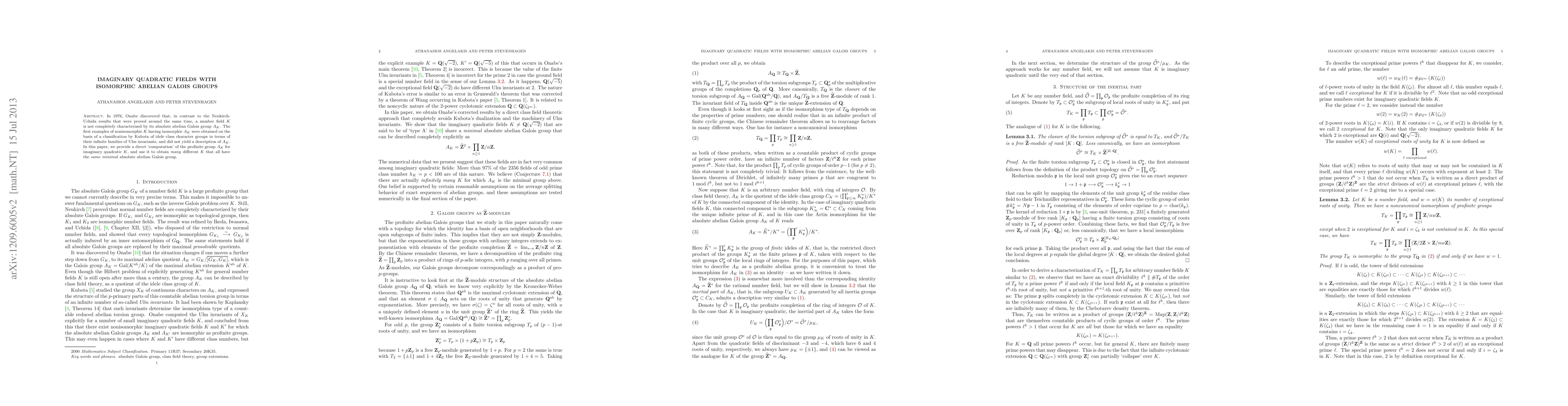 This paper investigates imaginary quadratic fields with isomorphic abelian Galois groups, demonstrating that such fields need not be completely characterized by their absolute abelian Galois group. It provides a direct computation of these groups to identify numerous distinct fields sharing the same minimal absolute abelian Galois group.