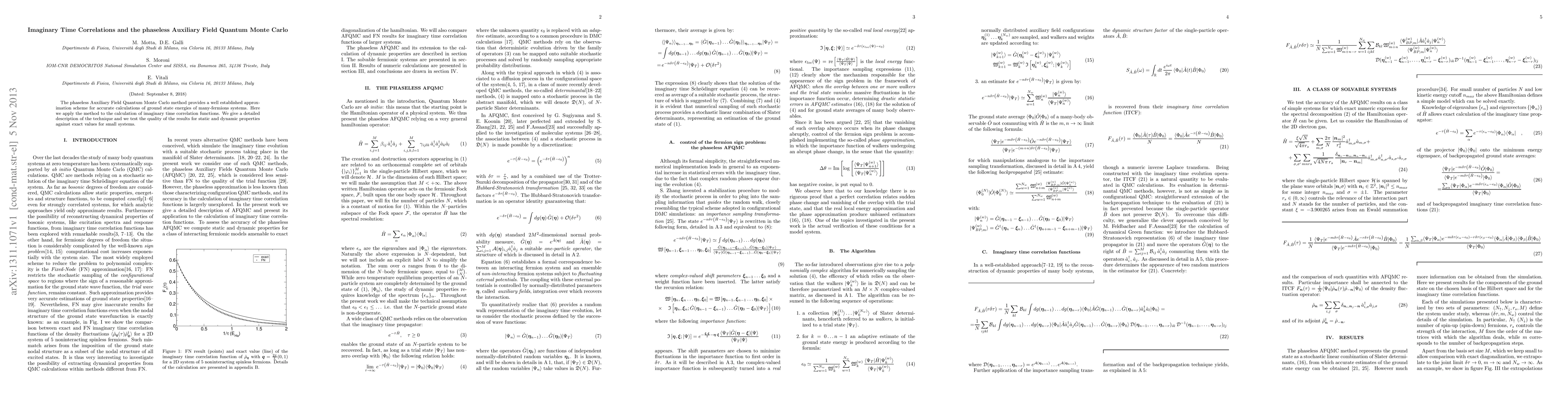 This paper introduces the phaseless Auxiliary Field Quantum Monte Carlo method for calculating imaginary time correlation functions in many-fermion systems, providing a detailed description of the technique and testing its accuracy against exact values for small systems.