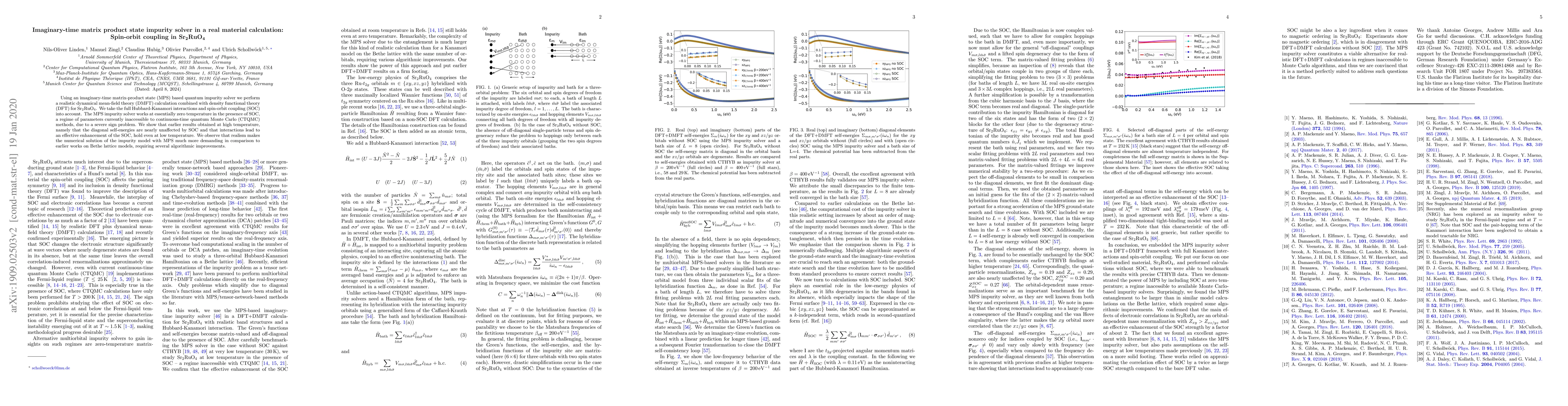 This paper employs an imaginary-time matrix product state (MPS) impurity solver for a DMFT calculation in Sr$_2$RuO$_4$, considering full Hubbard-Kanamori interactions and spin-orbit coupling (SOC). The MPS method effectively handles the zero-temperature regime with SOC, revealing that earlier high-temperature results persist at low temperatures.