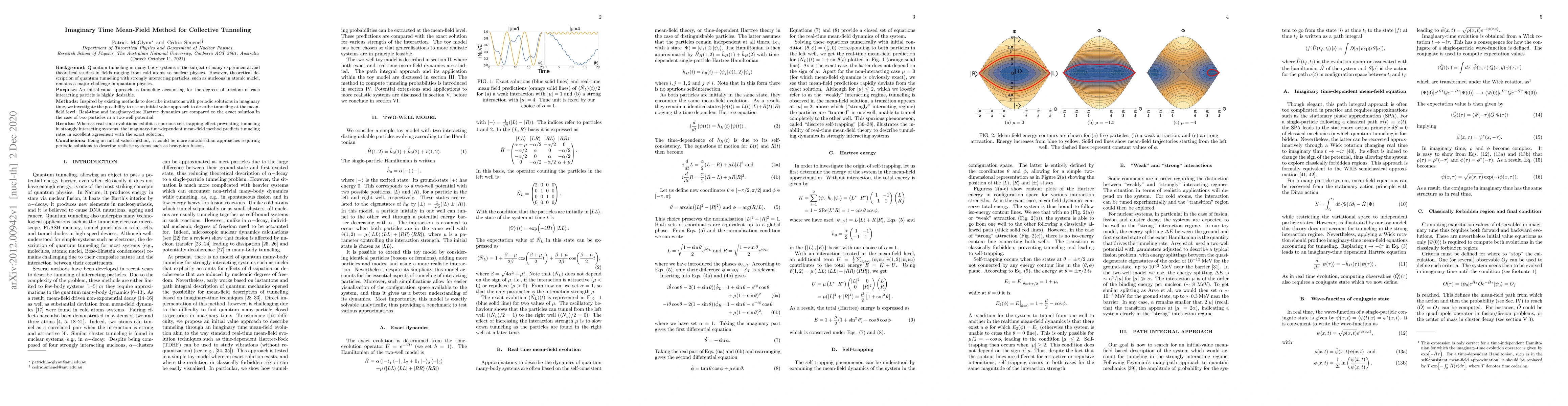 This paper proposes an imaginary time mean-field method for describing collective tunneling in many-body systems, demonstrating its effectiveness in predicting tunneling rates in strongly interacting systems like nucleons in atomic nuclei. The method shows better agreement with exact solutions compared to real-time approaches, suggesting its potential for applications in heavy-ion fusion.
