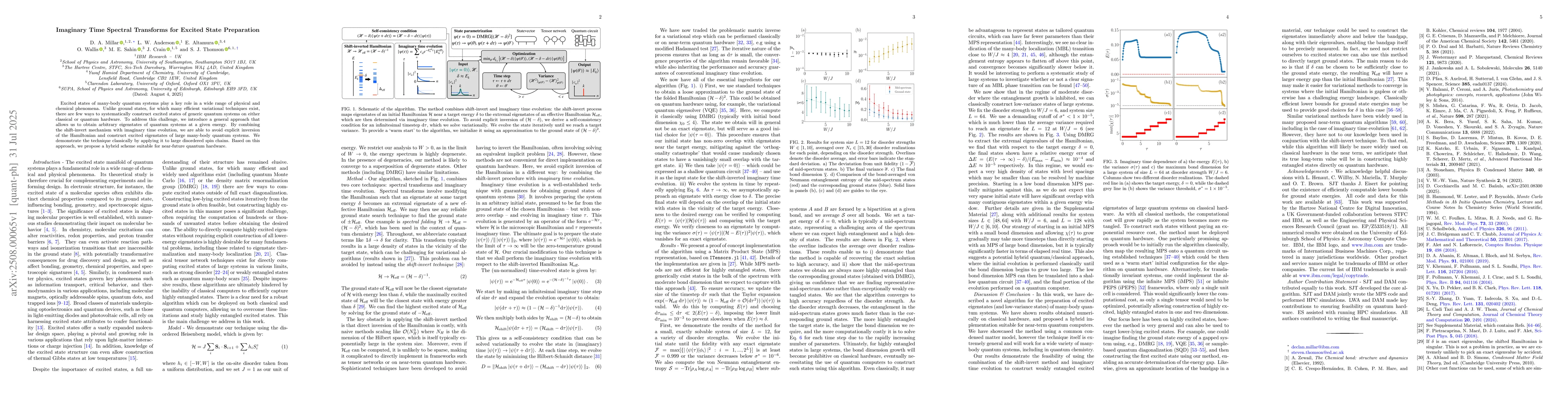 Excited states of many-body quantum systems play a key role in a wide range of physical and chemical phenomena. Unlike ground states, for which many efficient variational techniques exist, there are few ways to systematically construct excited states of generic quantum systems on either classical or quantum hardware. To address this challenge, we introduce a general approach that allows us to obtain arbitrary eigenstates of quantum systems at a given energy. By combining the shift-invert mechanism with imaginary time evolution, we are able to avoid explicit inversion of the Hamiltonian and construct excited eigenstates of large many-body quantum systems. We demonstrate the technique classically by applying it to large disordered spin chains. Based on this approach, we propose a hybrid scheme suitable for near-future quantum hardware.