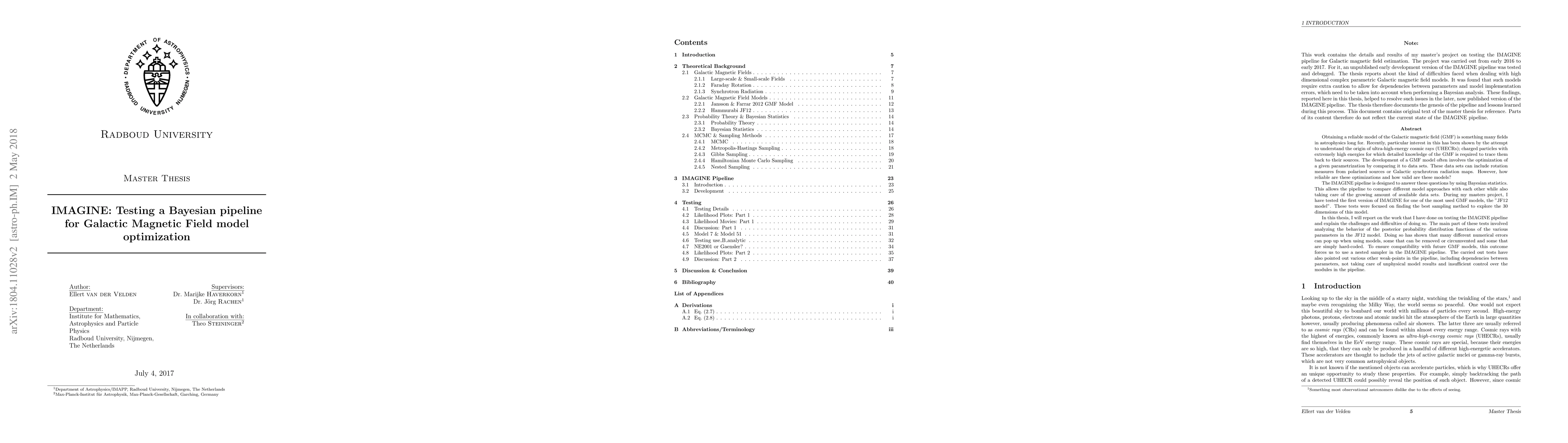 This work contains the details and results of my master's project on testing the IMAGINE pipeline for Galactic magnetic field estimation. The project was carried out from early 2016 to early 2017. For it, an unpublished early development version of the IMAGINE pipeline was tested and debugged. The thesis reports about the kind of difficulties faced when dealing with high dimensional complex parametric Galactic magnetic field models. It was found that such models require extra caution to allow for dependencies between parameters and model implementation errors, which need to be taken into account when performing a Bayesian analysis. These findings, reported here in this thesis, helped to resolve such issues in the later, now published version of the IMAGINE pipeline. The thesis therefore documents the genesis of the pipeline and lessons learned during this process. This document contains original text of the master thesis for reference. Parts of its content therefore do not reflect the current state of the IMAGINE pipeline.