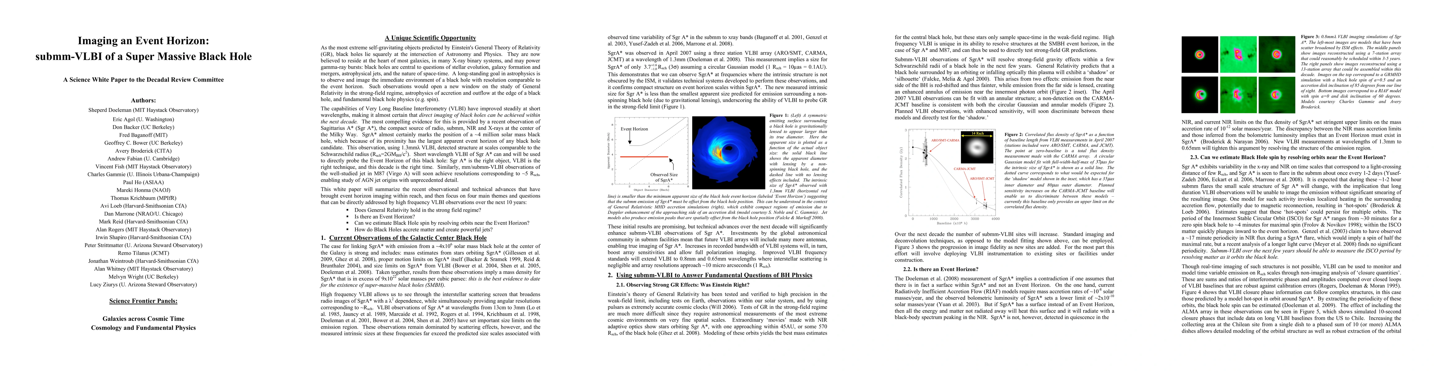 A long standing goal in astrophysics is to directly observe the immediate environment of a black hole with angular resolution comparable to the event horizon. Realizing this goal would open a new window on the study of General Relativity in the strong field regime, accretion and outflow processes at the edge of a black hole, the existence of an event horizon, and fundamental black hole physics (e.g., spin). Steady long-term progress on improving the capability of Very Long Baseline Interferometry (VLBI) at short wavelengths has now made it extremely likely that this goal will be achieved within the next decade. The most compelling evidence for this is the recent observation by 1.3mm VLBI of Schwarzschild radius scale structure in SgrA*, the compact source of radio, submm, NIR and xrays at the center of the Milky Way. SgrA* is thought to mark the position of a ~4 million solar mass black hole, and because of its proximity and estimated mass presents the largest apparent event horizon size of any black hole candidate in the Universe. Over the next decade, existing and planned mm/submm facilities will be combined into a high sensitivity, high angular resolution "Event Horizon Telescope" that will bring us as close to the edge of black hole as we will come for decades. This white paper describes the science case for mm/submm VLBI observations of both SgrA* and M87 (a radio loud AGN of a much more luminous class that SgrA*). We emphasize that while there is development and procurement involved, the technical path forward is clear, and the recent successful observations have removed much of the risk that would normally be associated with such an ambitious project.