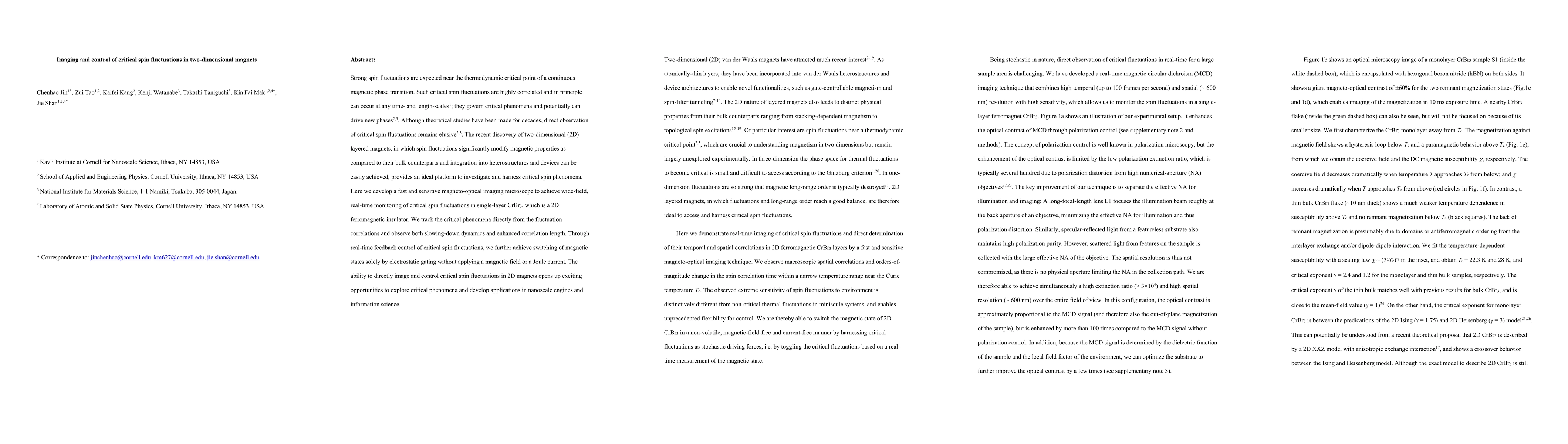 Strong spin fluctuations are expected near the thermodynamic critical point of a continuous magnetic phase transition. Such critical spin fluctuations are highly correlated and in principle can occur at any time- and length-scales; they govern critical phenomena and potentially can drive new phases. Although theoretical studies have been made for decades, direct observation of critical spin fluctuations remains elusive. The recent discovery of two-dimensional (2D) layered magnets, in which spin fluctuations significantly modify magnetic properties as compared to their bulk counterparts and integration into heterostructures and devices can be easily achieved, provides an ideal platform to investigate and harness critical spin phenomena. Here we develop a fast and sensitive magneto-optical imaging microscope to achieve wide-field, real-time monitoring of critical spin fluctuations in single-layer CrBr3, which is a 2D ferromagnetic insulator. We track the critical phenomena directly from the fluctuation correlations and observe both slowing-down dynamics and enhanced correlation length. Through real-time feedback control of critical spin fluctuations, we further achieve switching of magnetic states solely by electrostatic gating without applying a magnetic field or a Joule current. The ability to directly image and control critical spin fluctuations in 2D magnets opens up exciting opportunities to explore critical phenomena and develop applications in nanoscale engines and information science.