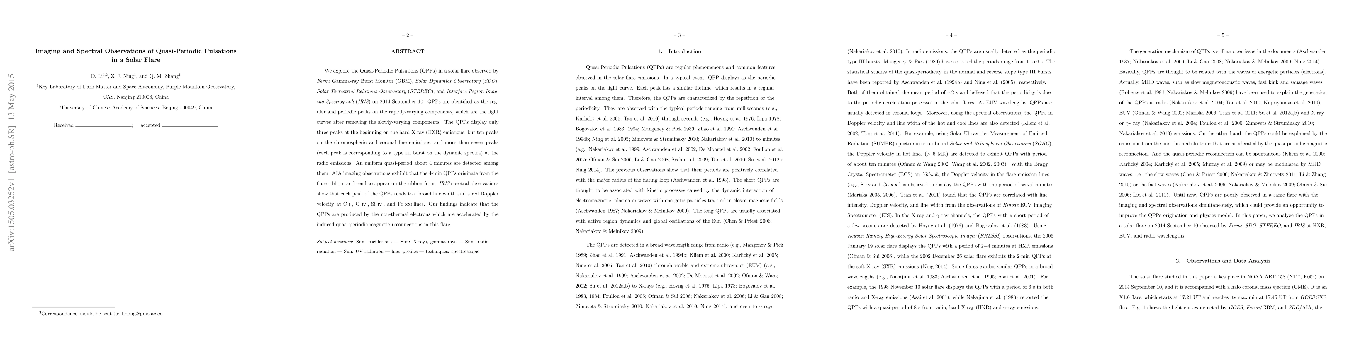 This study investigates Quasi-Periodic Pulsations (QPPs) in a solar flare observed on September 10, 2014, using multiple instruments. The QPPs exhibit a uniform quasi-period of about 4 minutes and originate from the flare ribbon, suggesting they are produced by non-thermal electrons from quasi-periodic magnetic reconnections.