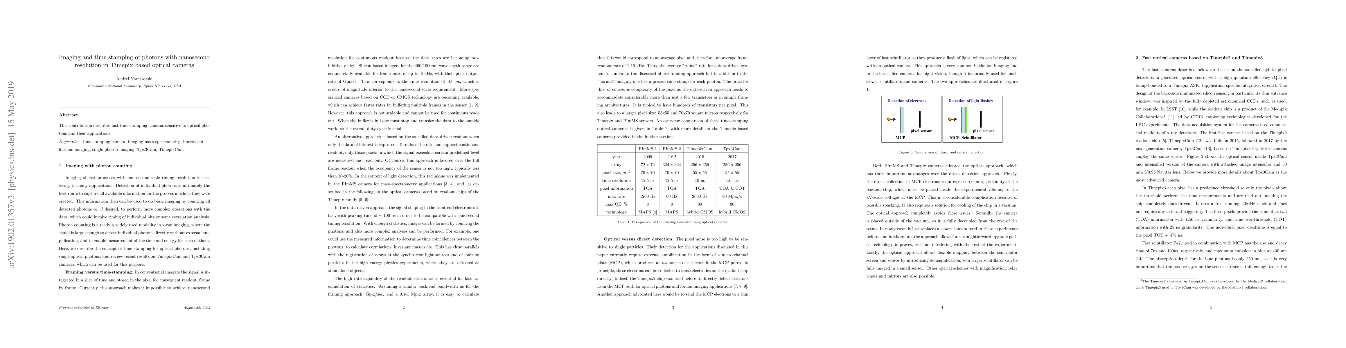 This contribution describes fast time-stamping cameras sensitive to optical photons and their applications.