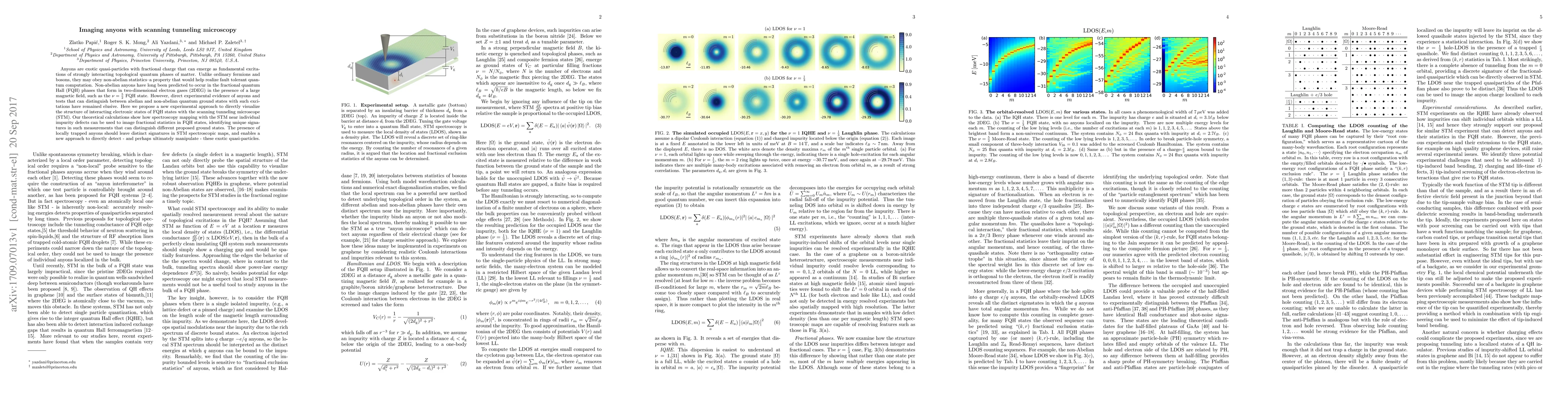 Anyons are exotic quasi-particles with fractional charge that can emerge as fundamental excitations of strongly interacting topological quantum phases of matter. Unlike ordinary fermions and bosons, they may obey non-abelian statistics--a property that would help realize fault tolerant quantum computation. Non-abelian anyons have long been predicted to occur in the fractional quantum Hall (FQH) phases that form in two-dimensional electron gases (2DEG) in the presence of a large magnetic field, su ch as the $\nu=\tfrac{5}{2}$ FQH state. However, direct experimental evidence of anyons and tests that can distinguish between abelian and non-abelian quantum ground states with such excitations have remained elusive. Here we propose a new experimental approach to directly visualize the structure of interacting electronic states of FQH states with the scanning tunneling microscope (STM). Our theoretical calculations show how spectroscopy mapping with the STM near individual impurity defects can be used to image fractional statistics in FQH states, identifying unique signatures in such measurements that can distinguish different proposed ground states. The presence of locally trapped anyons should leave distinct signatures in STM spectroscopic maps, and enables a new approach to directly detect - and perhaps ultimately manipulate - these exotic quasi-particles.