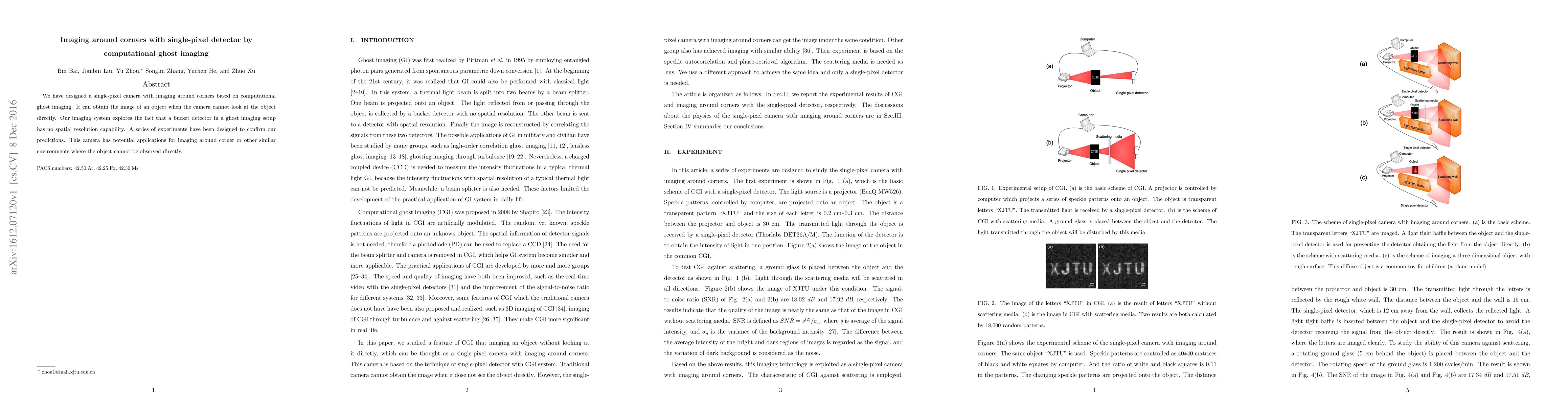 This research develops a single-pixel camera using computational ghost imaging to capture images of objects hidden from direct view. The system leverages the lack of spatial resolution in a bucket detector to achieve around-corner imaging, validated through experimental results.