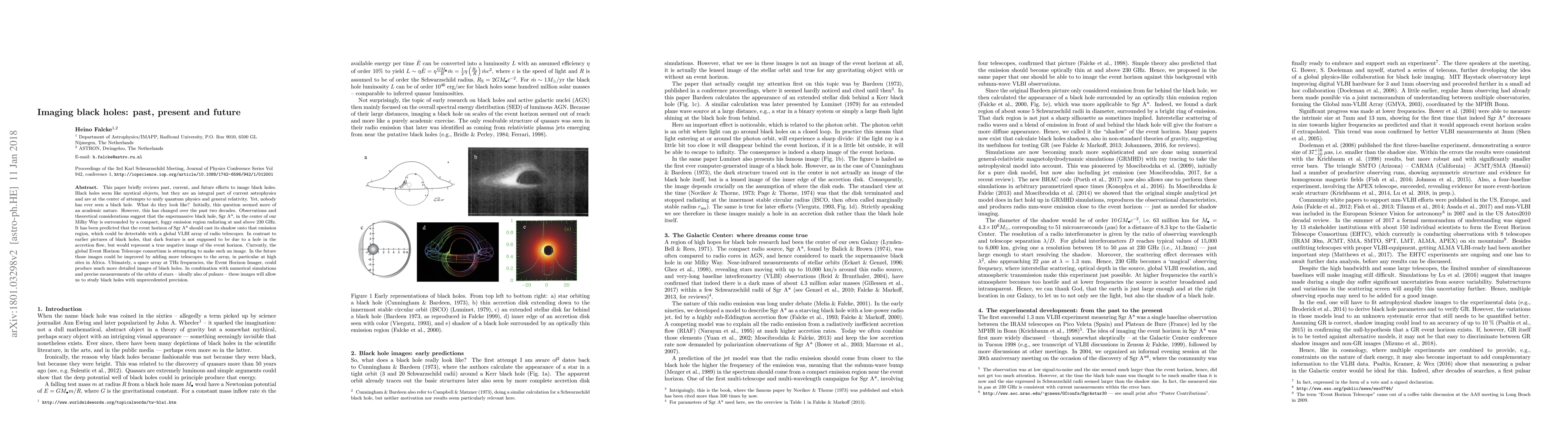 The paper reviews past, current, and future efforts to image black holes in the radio regime, focusing on the Event Horizon Telescope (EHT) consortium's attempts to image Sgr A* using submm-wave VLBI observations.