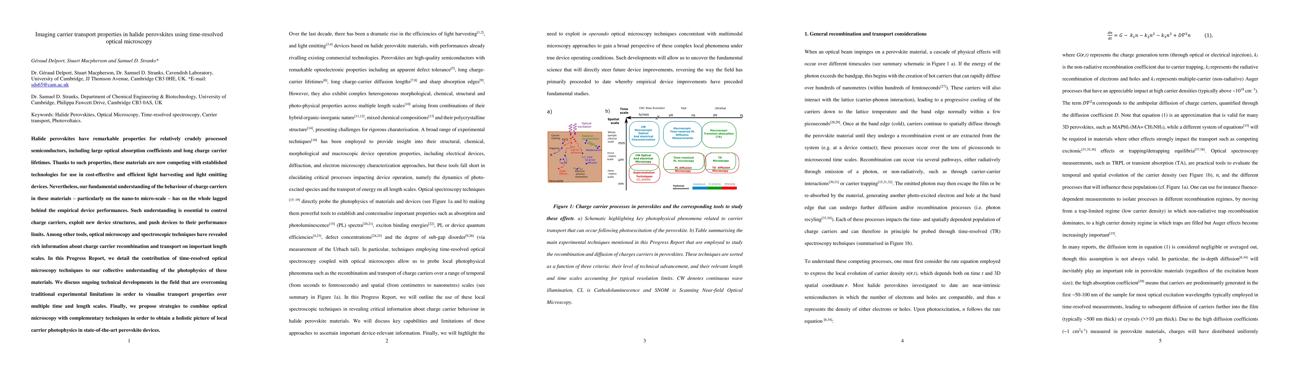 Halide perovskites have remarkable properties for relatively crudely processed semiconductors, including large optical absorption coefficients and long charge carrier lifetimes. Thanks to such properties, these materials are now competing with established technologies for use in cost-effective and efficient light harvesting and light emitting devices. Nevertheless, our fundamental understanding of the behaviour of charge carriers in these materials particularly on the nano to micro scale has on the whole lagged behind the empirical device performances. Such understanding is essential to control charge carriers, exploit new device structures, and push devices to their performance limits. Among other tools, optical microscopy and spectroscopic techniques have revealed rich information about charge carrier recombination and transport on important length scales. In this Progress Report, we detail the contribution of time-resolved optical microscopy techniques to our collective understanding of the photophysics of these materials. We discuss ongoing technical developments in the field that are overcoming traditional experimental limitations in order to visualise transport properties over multiple time and length scales. Finally, we propose strategies to combine optical microscopy with complementary techniques in order to obtain a holistic picture of local carrier photophysics in state of the art perovskite devices.