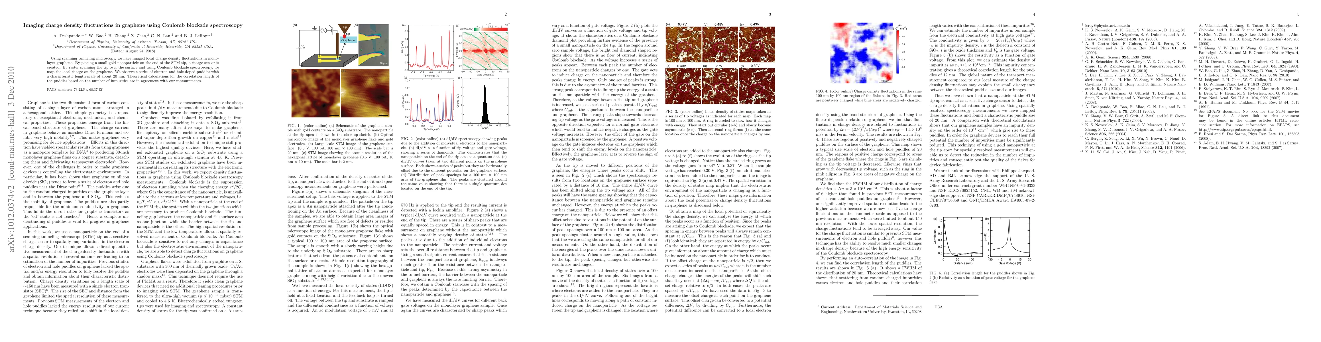 This study uses scanning tunneling microscopy with a gold nanoparticle tip to image local charge density fluctuations in monolayer graphene, revealing electron and hole doped puddles. Theoretical models match the observed characteristic length scale of about 20 nm.
