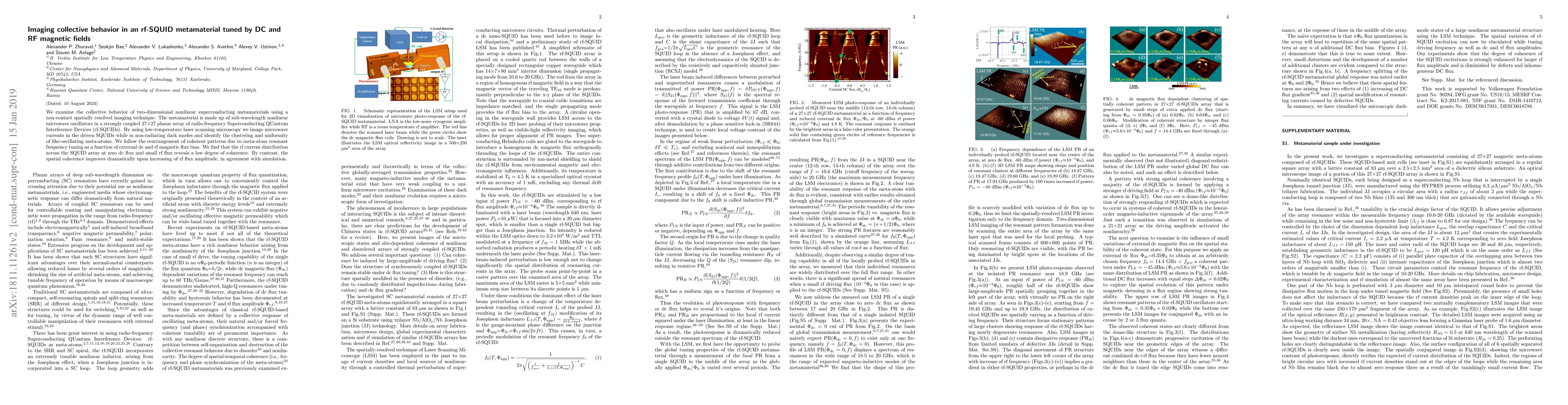 This paper investigates the collective behavior of a 27x27 array of rf SQUIDs in a nonlinear superconducting metamaterial using laser scanning microscopy. The study reveals improved spatial coherence in the rf current distribution with increased rf flux, demonstrating the tuning of meta-atom resonant frequencies by external magnetic fields.