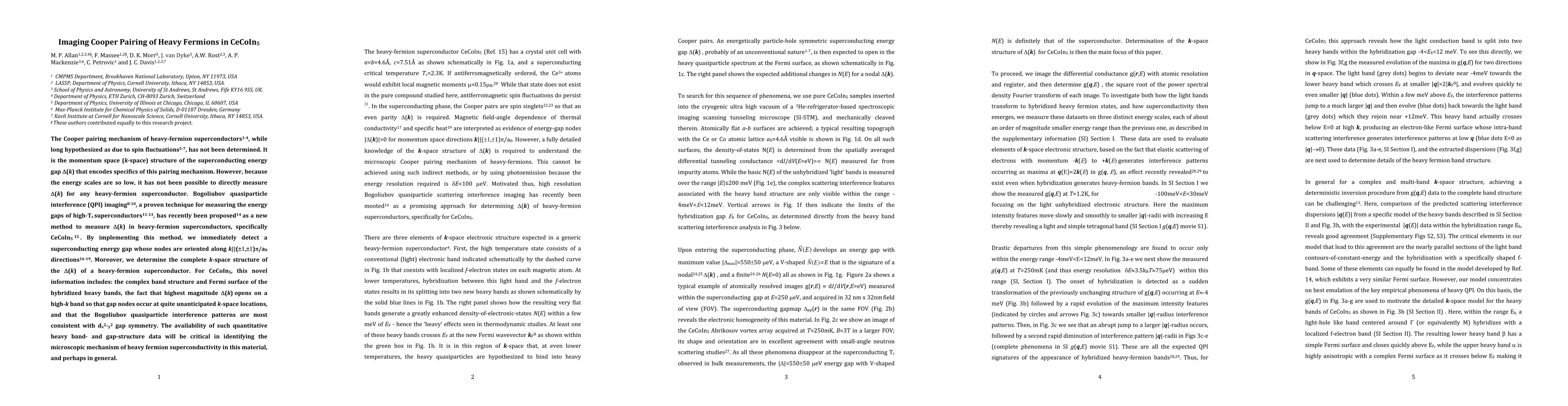 This research employs Bogoliubov quasiparticle interference imaging to determine the k-space structure of the superconducting energy gap in CeCoIn5, revealing unexpected nodes and dx2-y2 gap symmetry, providing crucial insights into the pairing mechanism of heavy-fermion superconductivity.