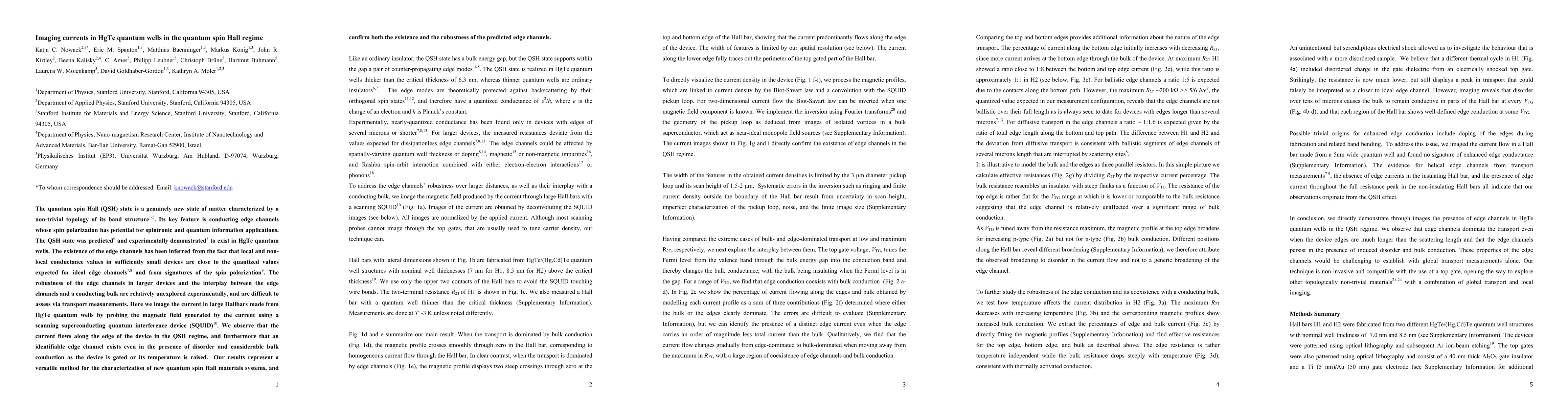 This paper demonstrates imaging of edge currents in HgTe quantum wells in the quantum spin Hall regime using a scanning SQUID, confirming the existence and robustness of edge channels despite disorder and bulk conduction. The method provides a versatile tool for characterizing quantum spin Hall materials.