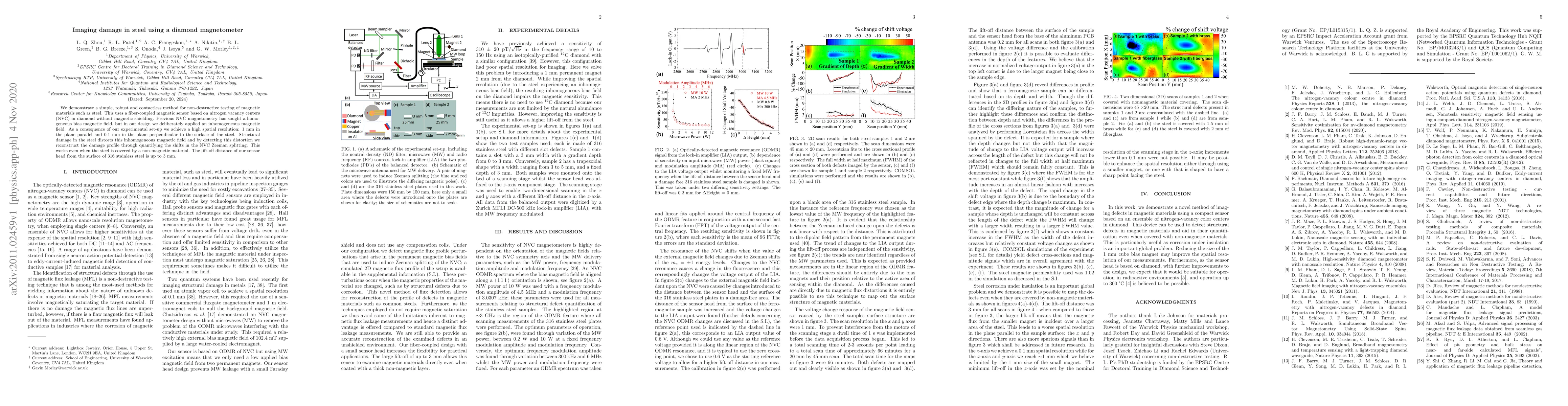 This paper presents a novel, contactless method for non-destructive testing of steel using a fiber-coupled diamond magnetometer based on nitrogen vacancy centers. The technique leverages an inhomogeneous magnetic field to achieve high spatial resolution, enabling the detection of structural damage by measuring distortions in the magnetic field.