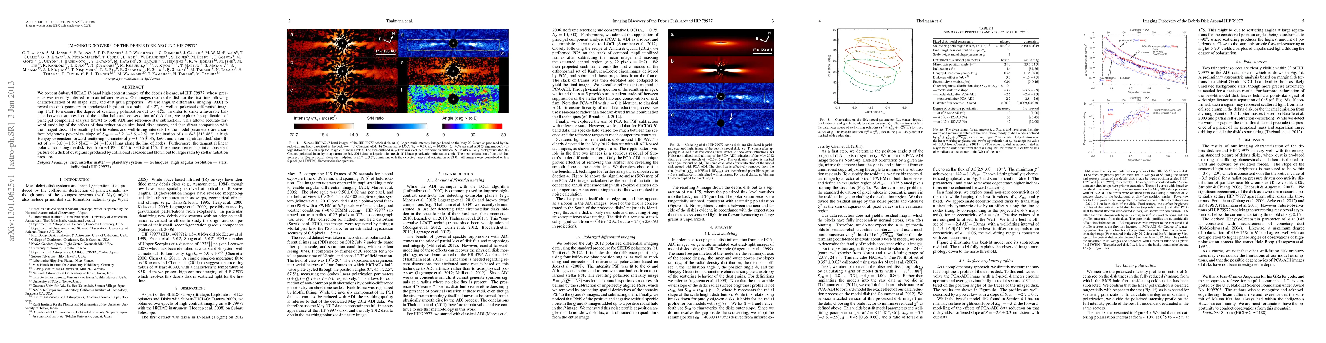 We present Subaru/HiCIAO H-band high-contrast images of the debris disk around HIP 79977, whose pres- ence was recently inferred from an infrared excess. Our images resolve the disk for the first time, allowing characterization of its shape, size, and dust grain properties. We use angular differential imaging (ADI) to reveal the disk geometry in unpolarized light out to a radius of ~2", as well as polarized differential imaging (PDI) to measure the degree of scattering polarization out to ~1.5". In order to strike a favorable balance between suppression of the stellar halo and conservation of disk flux, we explore the application of principal component analysis (PCA) to both ADI and reference star subtraction. This allows accurate forward modeling of the effects of data reduction on simulated disk images, and thus direct comparison with the imaged disk. The resulting best-fit values and well-fitting intervals for the model parameters are a surface brightness power-law slope of S_out = -3.2 [-3.6,-2.9], an inclination of i = 84{\deg} [81{\deg},86{\deg}], a high Henyey-Greenstein forward-scattering parameter of g = 0.45 [0.35, 0.60], and a non-significant disk-star offset of u = 3.0 [-1.5, 7.5] AU = 24 [-13, 61] mas along the line of nodes. Furthermore, the tangential linear polarization along the disk rises from ~10% at 0.5" to ~45% at 1.5". These measurements paint a consistent picture of a disk of dust grains produced by collisional cascades and blown out to larger radii by stellar radiation pressure.