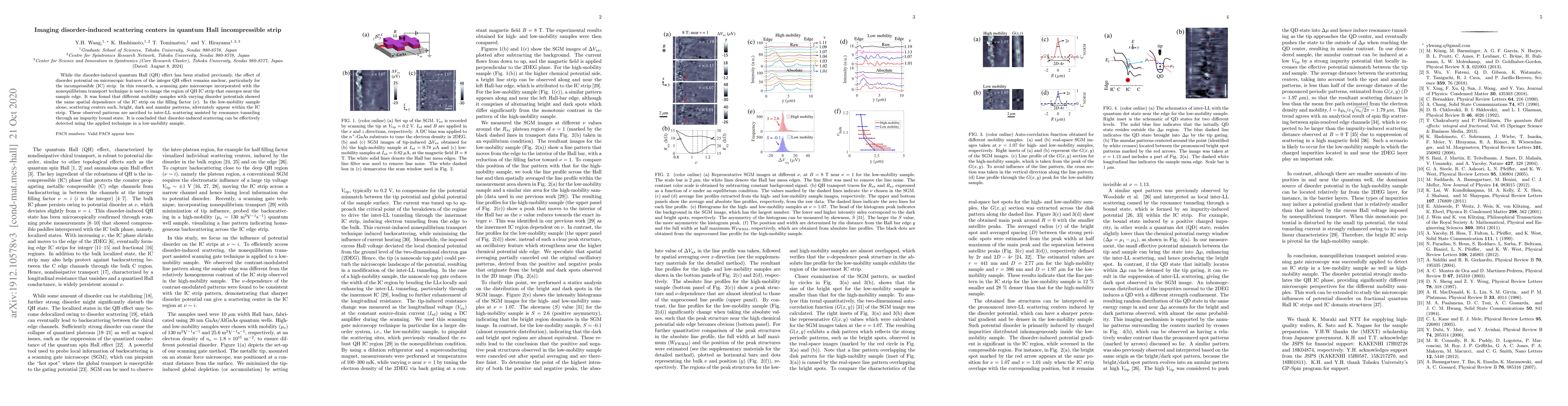 While the disorder-induced quantum Hall (QH) effect has been studied previously, the effect ofdisorder potential on microscopic features of the integer QH effect remains unclear, particularly forthe incompressible (IC) strip. In this research, a scanning gate microscope incorporated with thenonequilibrium transport technique is used to image the region of QH IC strip that emerges near thesample edge. It was found that different mobility samples with varying disorder potentials showedthe same spatial dependence of the IC strip on the filling factor ({\nu}). In the low-mobility samplealone, scattering centers such, bright, dark and annular patterns, alternately appear within the IC strip. These observed patterns are ascribed to inter-LL scattering assisted by resonance tunnelingthrough an impurity bound state. It is concluded that disorder-induced scattering can be effectivelydetected using the applied technique in a low-mobility sample.