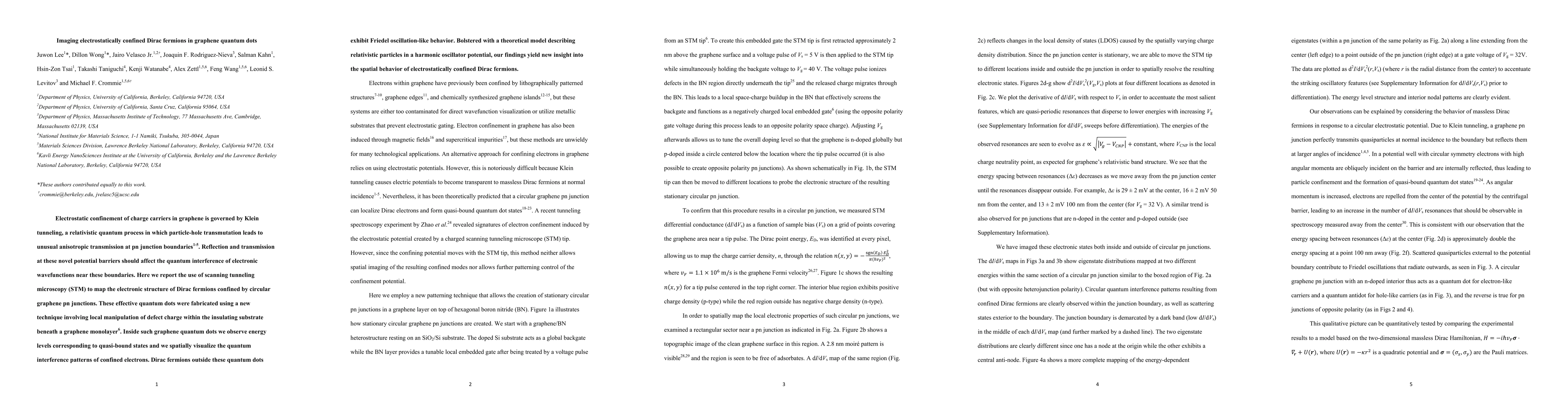 This study employs scanning tunneling microscopy to map the electronic structure of Dirac fermions in graphene quantum dots created by electrostatic confinement and local defect manipulation. The research reveals quasi-bound states and quantum interference patterns within the dots, and observes Friedel oscillation-like behavior outside, providing new insights into the spatial behavior of these relativistic particles.