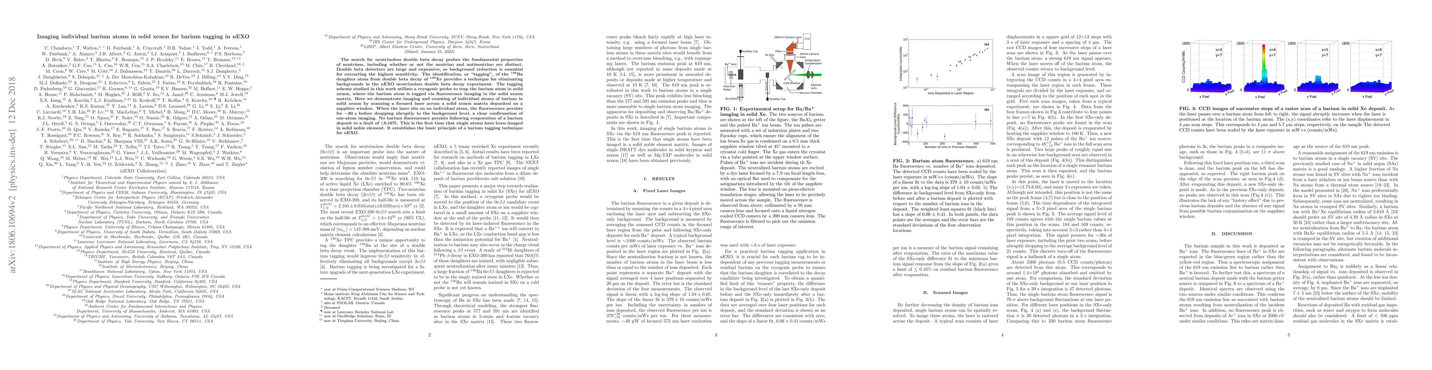 This paper demonstrates the imaging of individual barium atoms in solid xenon using fluorescence, establishing a method for barium tagging in the nEXO experiment to reduce backgrounds. The technique involves trapping barium in solid xenon and observing persistent fluorescence for ~30 seconds, confirming the imaging of single atoms.