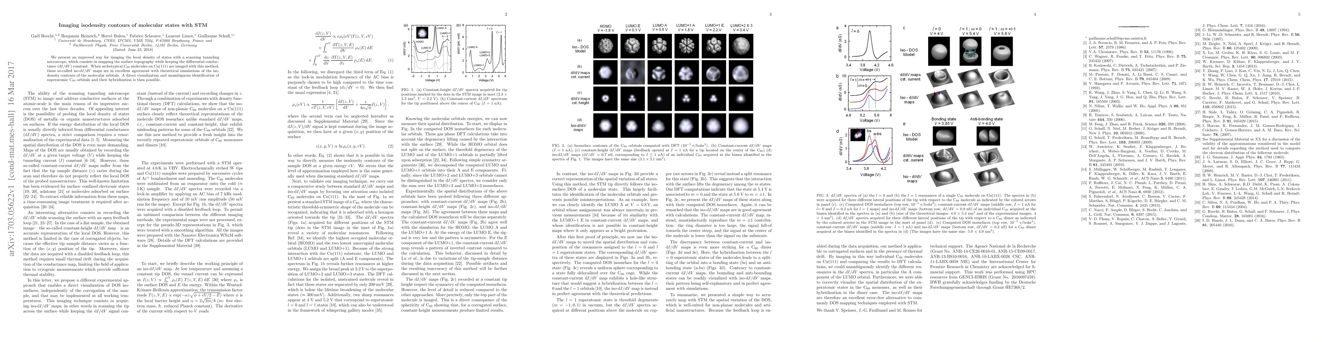 We present an improved way for imaging the local density of states with a scanning tunneling microscope, which consists in mapping the surface topography while keeping the differential conductance (d$I$/d$V$) constant. When archetypical C$_{60}$ molecules on Cu(111) are imaged with this method, these so-called iso-d$I$/d$V$ maps are in excellent agreement with theoretical simulations of the isodensity contours of the molecular orbitals. A direct visualization and unambiguous identification of superatomic C$_{60}$ orbitals and their hybridization is then possible.